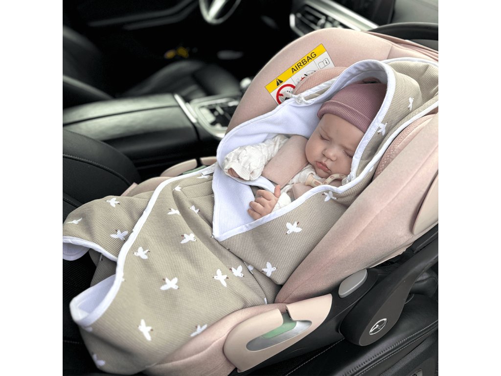 Praktickým riešením je gumička v rohu prikrývky, ktorú stačí prevliecť cez stredovú upevňovaciu časť pásu – vďaka tomu sa deka nezošmykne a bábätko sa neodkope. Oceníte ju najmä pri prenášaní dieťaťa zvonku do auta alebo počas chladnejších dní.