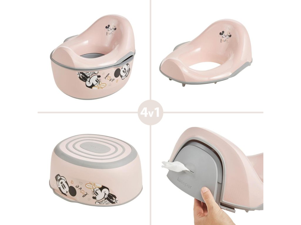 Detský nočník 4v1 nájde široké uplatnenie v každej domácnosti s dieťaťom. Okrem klasického nočníka slúži ako stupienok, redukcia na toaletu a môžete do neho uložiť aj utierky, aby ste ich mali vždy po ruke.