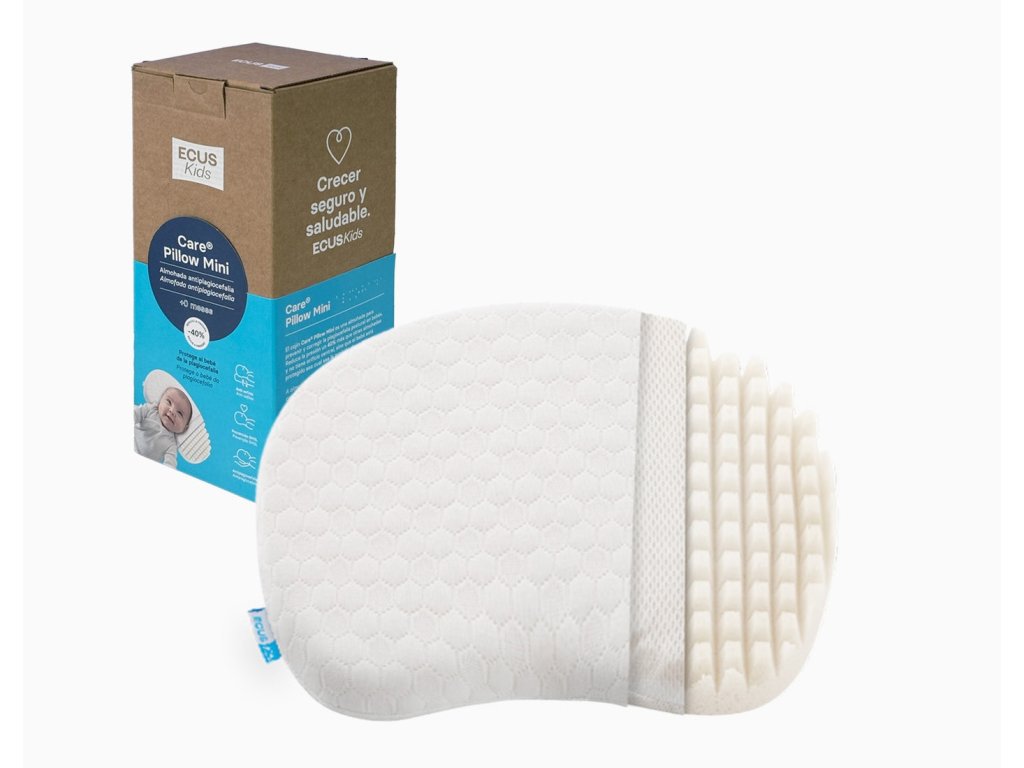 Detský mini vankúš Ecus Kids Care pomáha predchádzať splošteniu hlavičky (plagiocefálii) u dojčiat.Znižuje tlak o 40% viac ako iné vankúše a nemá stredový otvor, takže chráni dieťa bez ohľadu na polohu jeho hlavy.