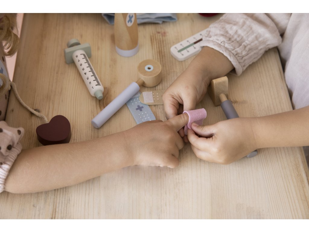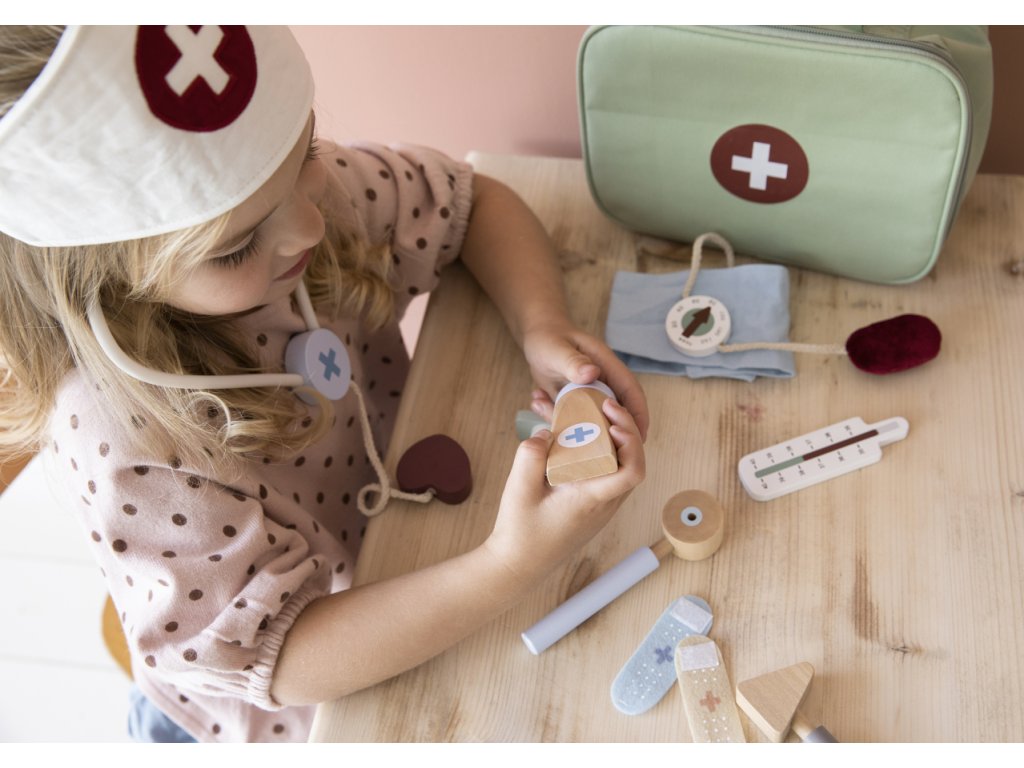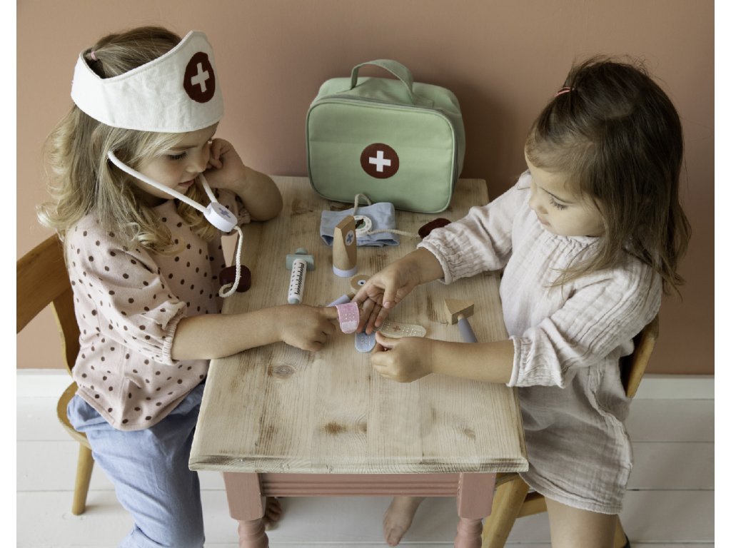Vaši pacienti sa budú cítiť oveľa lepšie, keď budete mať po ruke túto lekársku tašku, pripravení zmerať teplotu, skontrolovať tep a krvný tlak či použiť stetoskop. Táto rola učí deti, že návšteva lekára nie je vôbec desivá vec!