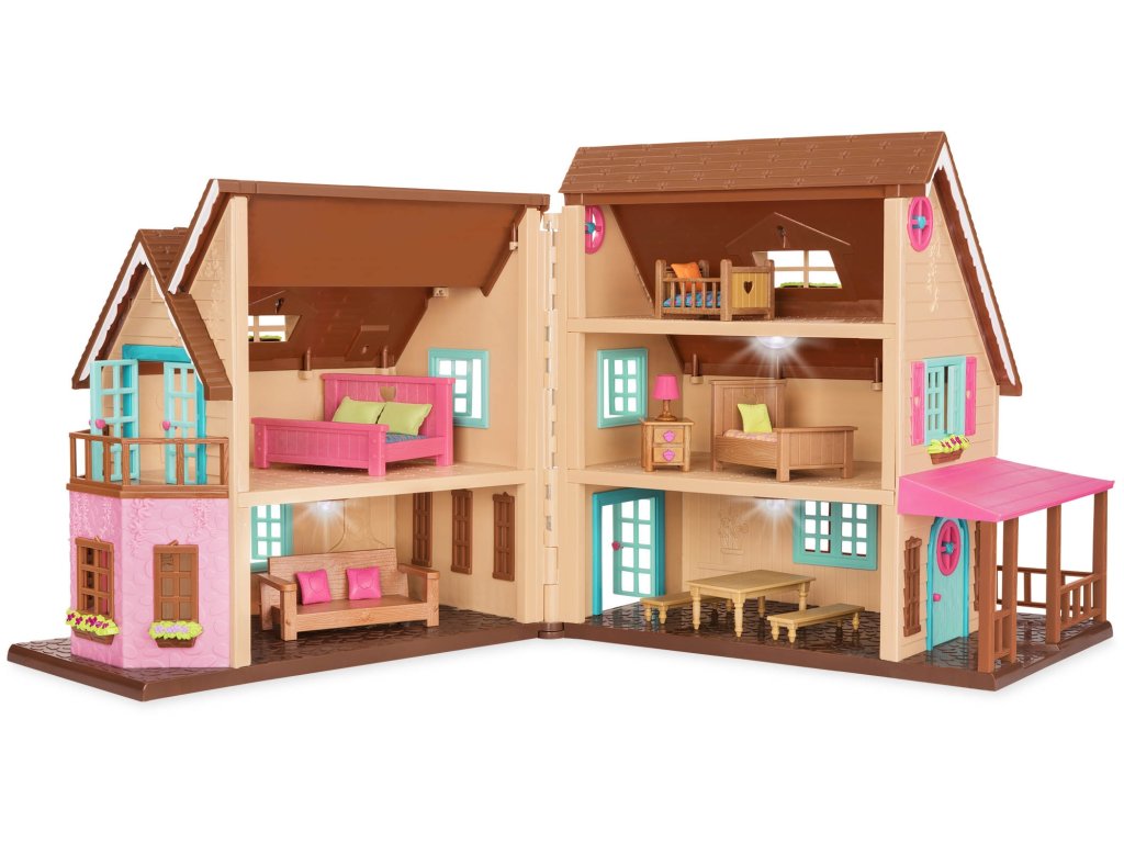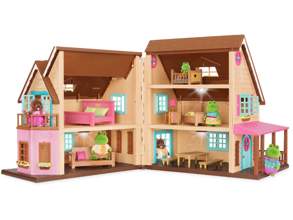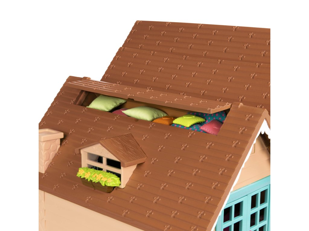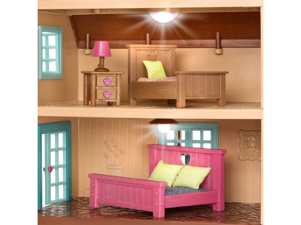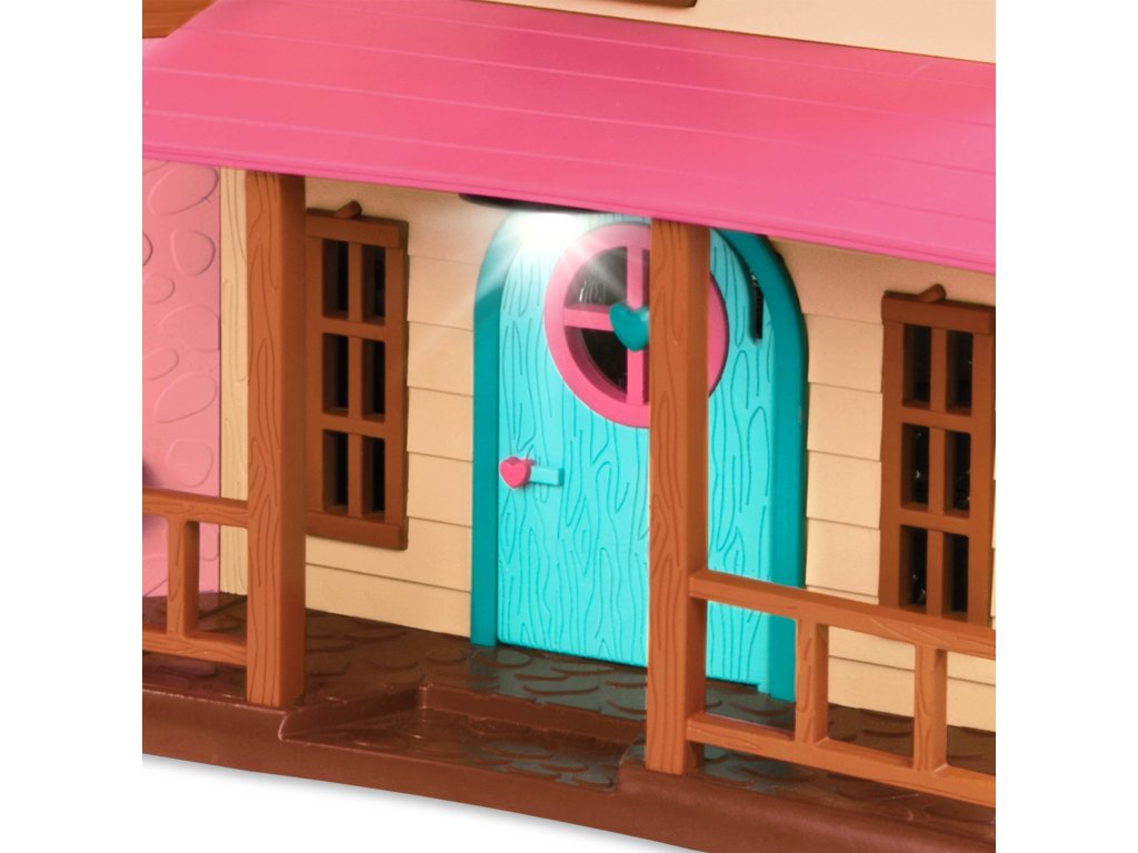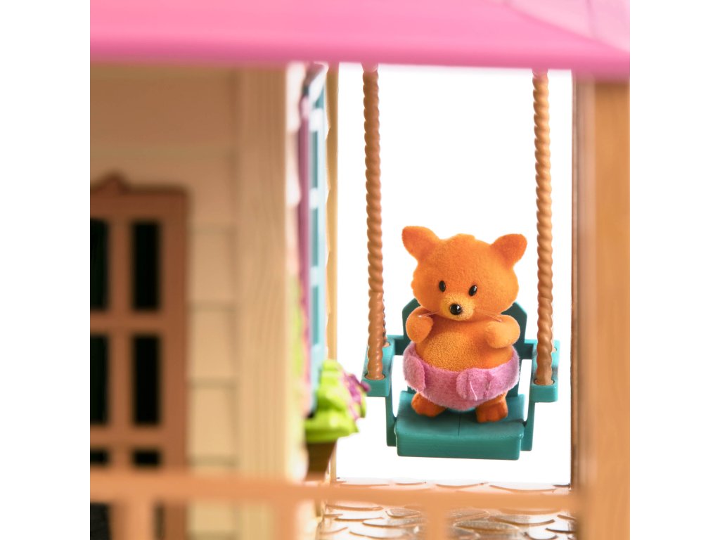 Otvárací 3-poschodový domček Hillside Cottage poskytuje nádherné bývanie postavičkám zvieratiek Li'l Woodzeez. Vnútri nájdete nábytok vrátane postelí pre celú rodinu, stola so stoličkami, pohovky atď. Spálňa na hornom poschodí má vstup balkón, na prízemí je krásna veranda pre relaxáciu vonku a hojdačka pre zábavu detí. A keď sa večer zotmie, môžete zapnúť vnútorné aj vonkajšie osvetlenie!