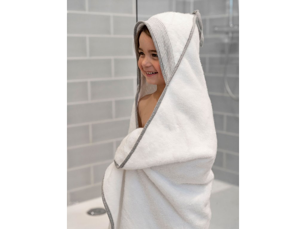 Uterák Doomoo Dry&Play je dostatočne veľký, aby sa do neho po kúpeli zababušili aj väčšie deti. Je vyrobený z mäkkej organickej bavlny a má certifikát OEKO-Tex.