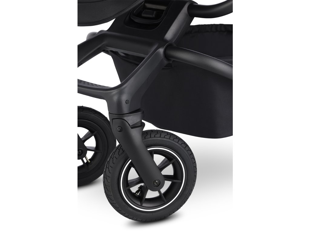 - Súčasťou kočíka sú odolné gélové kolesá aj nafukovacie kolesá vhodné do akéhokoľvek terénu