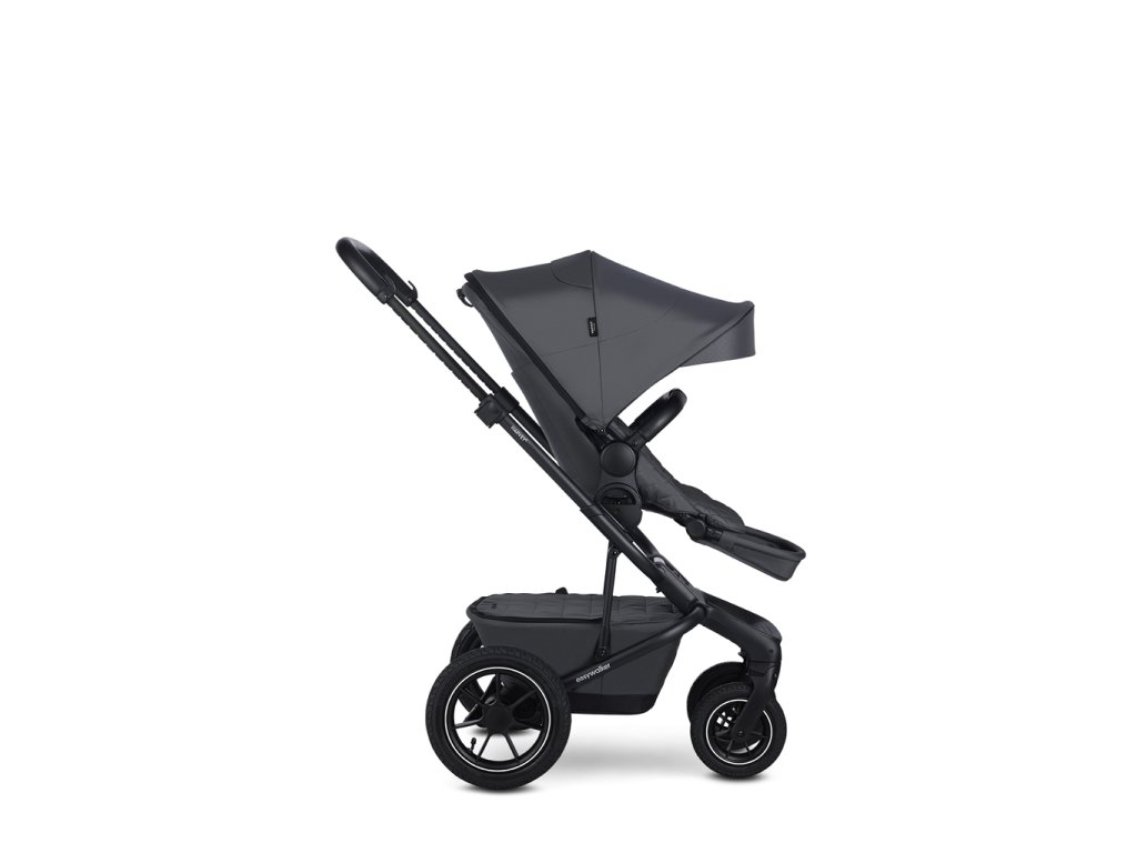 Elegantné a ľahko nastaviteľné sedadlo možno sklopiť do troch rôznych polôh len jednou rukou. Priestranné operadlo je vybavené extra vreckom na zadnej strane a je mimoriadne pohodlné vďaka tvarovaným ramenným vypchávkam, zmäkčovačom na bedrovom páse a ľahko použiteľným magnetickým päťbodovým pásom.