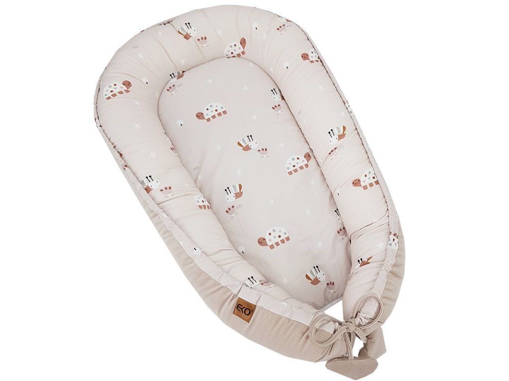 Multifunkčné hniezdo pre dieťa s okúzľujúcim vzhľadom poskytuje bezpečnosť a pohodlie pre spiace deti. Skvelá alternatíva k tradičným perinkám a zavinovačkám. Praktickosť hniezda znamená, že môže byť použitý aj ako podložka na hranie. Hniezdo má vysoké okraje, ktoré uľahčujú položenie dieťaťa na boku, čo je dôležité najmä, keď dieťa má reflux.