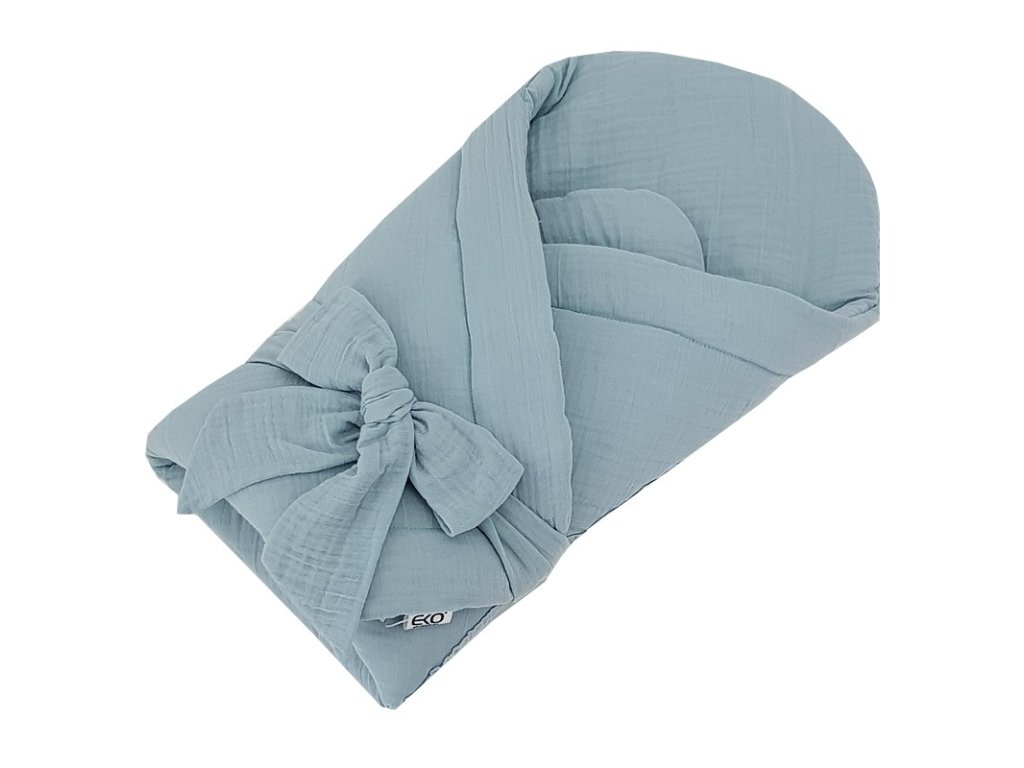 EKO Zavinovačka mušelínová s kokosovou vyberateľnou vložkou a mašľou Blue 75x75 cm