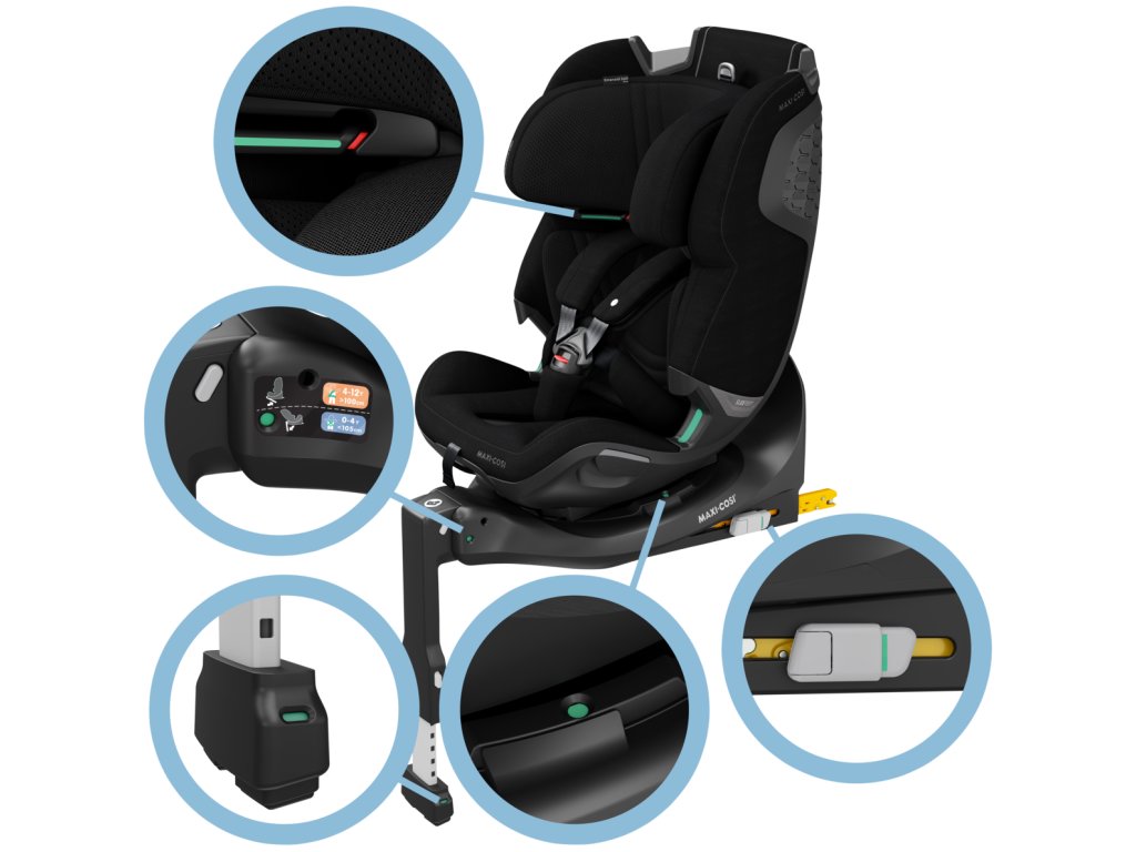 - integrovaná základňa s opornou nohou umožňuje jednoduchú a spoľahlivú inštaláciu do auta s pomocou systému ISOFIX