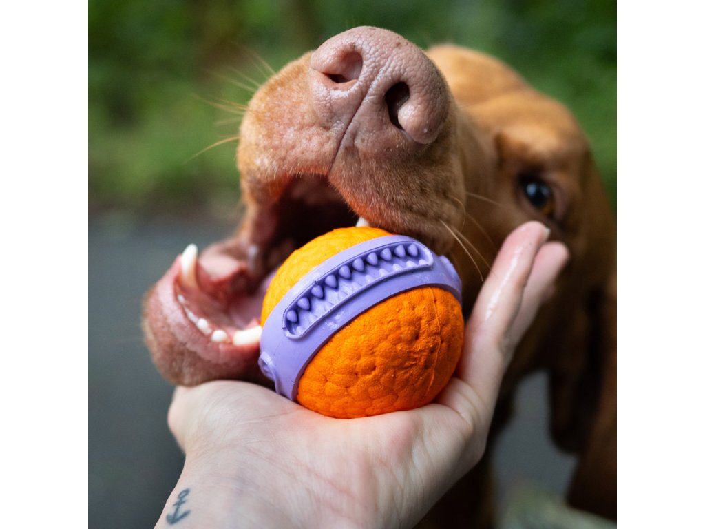 Stredou loptičky prechádza integrovaný prstenec, ktorý je navrhnutý tak, aby pri hre prirodzene čistil zuby vášho psíka, čo pomáha udržiavať jeho ústnu hygienu. Loptička tiež skvele pláva, je dobre vidieť na hladine a jeho odrazivosť je o viac ako 50% väčšia ako u bežných loptičiek, čo zaisťuje zábavné a aktívne hry.