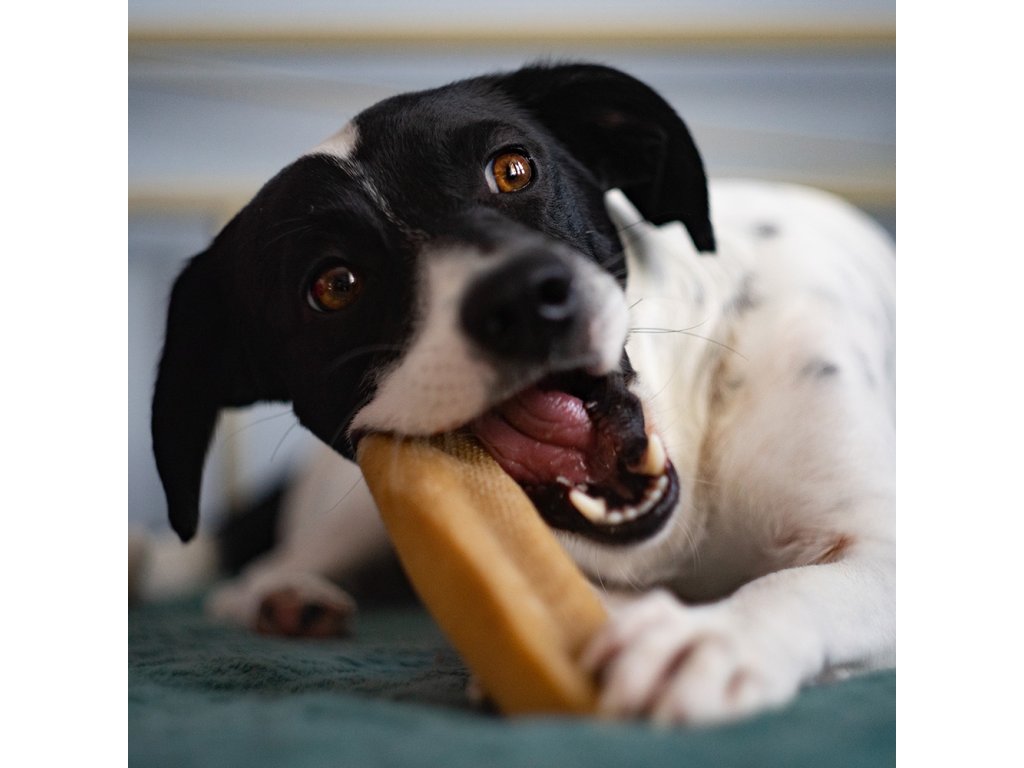 - Podpora zdravia zubov: Tvrdosť maškrty napomáha čisteniu zubov počas žuvania, čo znižuje množstvo povlaku a kameňa.