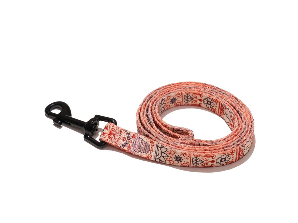 Štýlové vodítko pre vášho psíka. Vodítko je vyrobené z mäkkého a odolného polyesteru. Je husto tkané, aby bolo jemné a príjemné na chytenie do ruky. Karabína a krúžok sú vyrobené zo zliatiny zinku, sú extrémne pevné a odolné voči korózii. Vodítko je možné bezpečne prať v práčke bez poškodenia farieb.