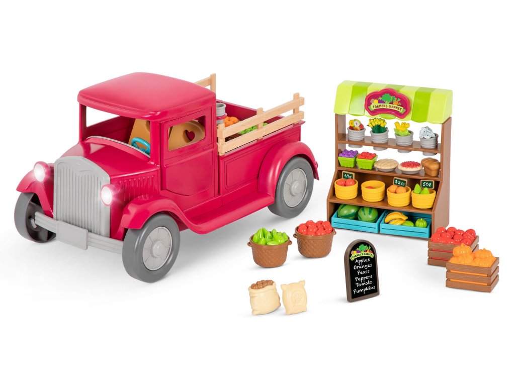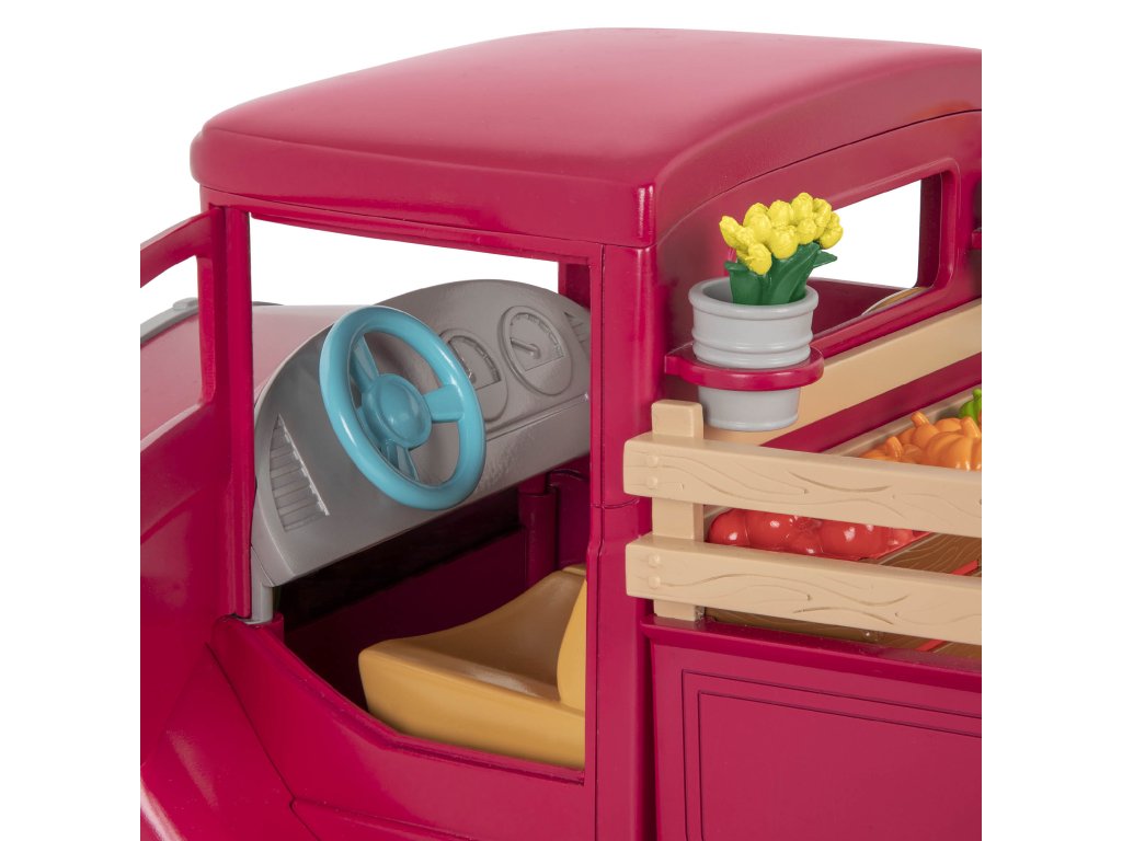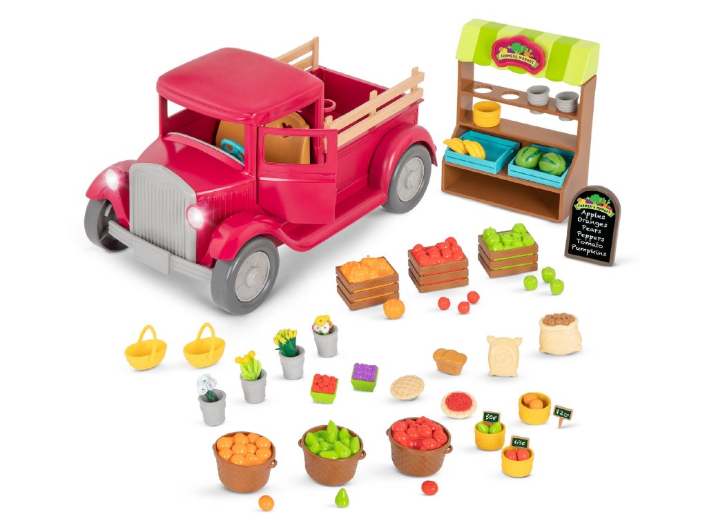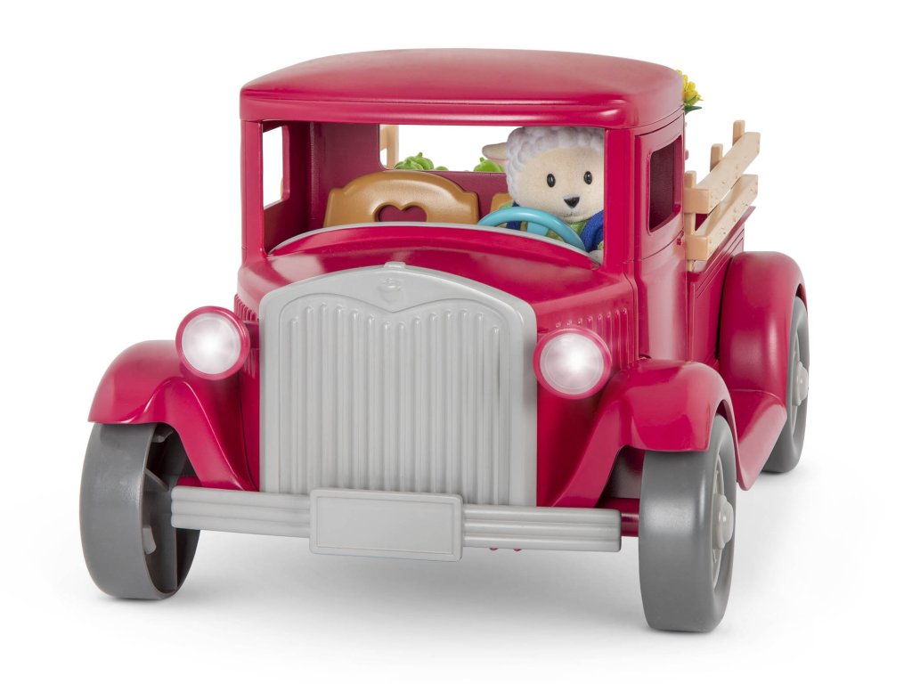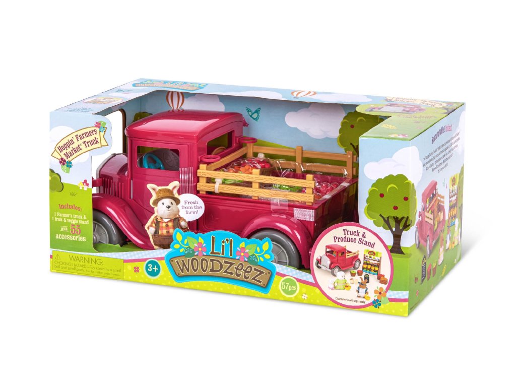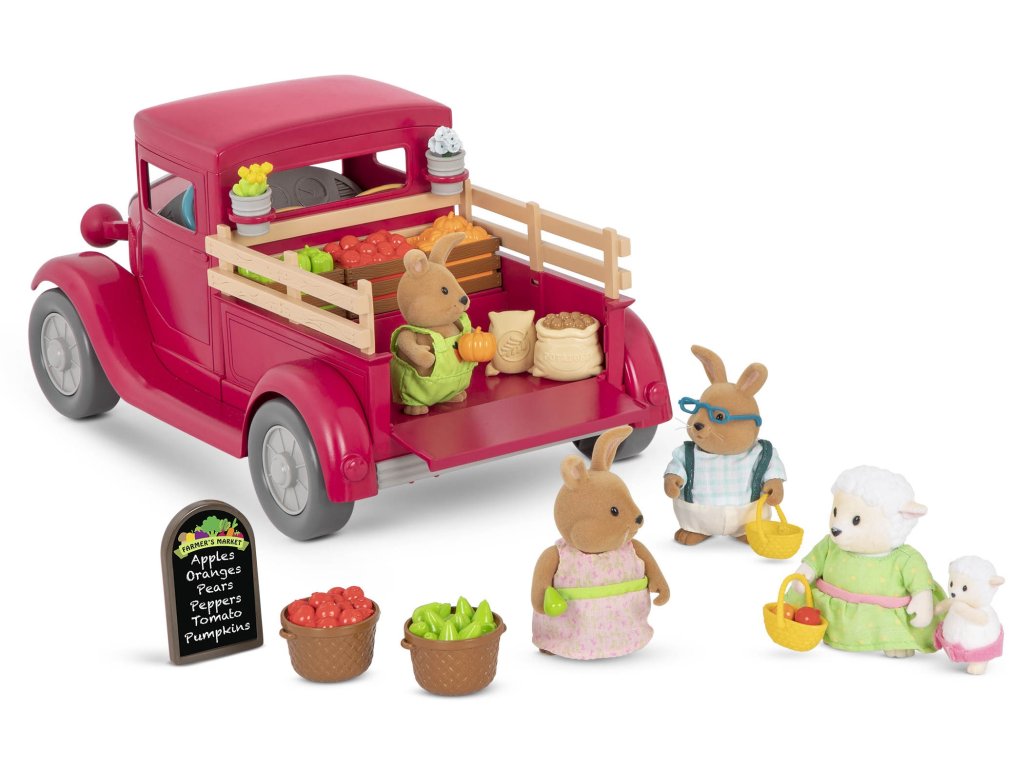 Farmársky pick-up priváža obyvateľom mestečka Honeysuckle Hollow každý deň čerstvú zeleninu a ovocie zozbierané ráno na farme.Vystavte všetko na stánku a pravidelne dopĺňajte stánok tovarom, ktorý sa vypredá! A až budete odchádzať z trhu, nezabudnite stlačiť volant, ktorým sa rozsvietia svetlá a ozve sa zvuk, aby všetci vedelí, že idete! Postavičky zvieratiek nie sú súčasťou balenia, predávajú sa samostatne.