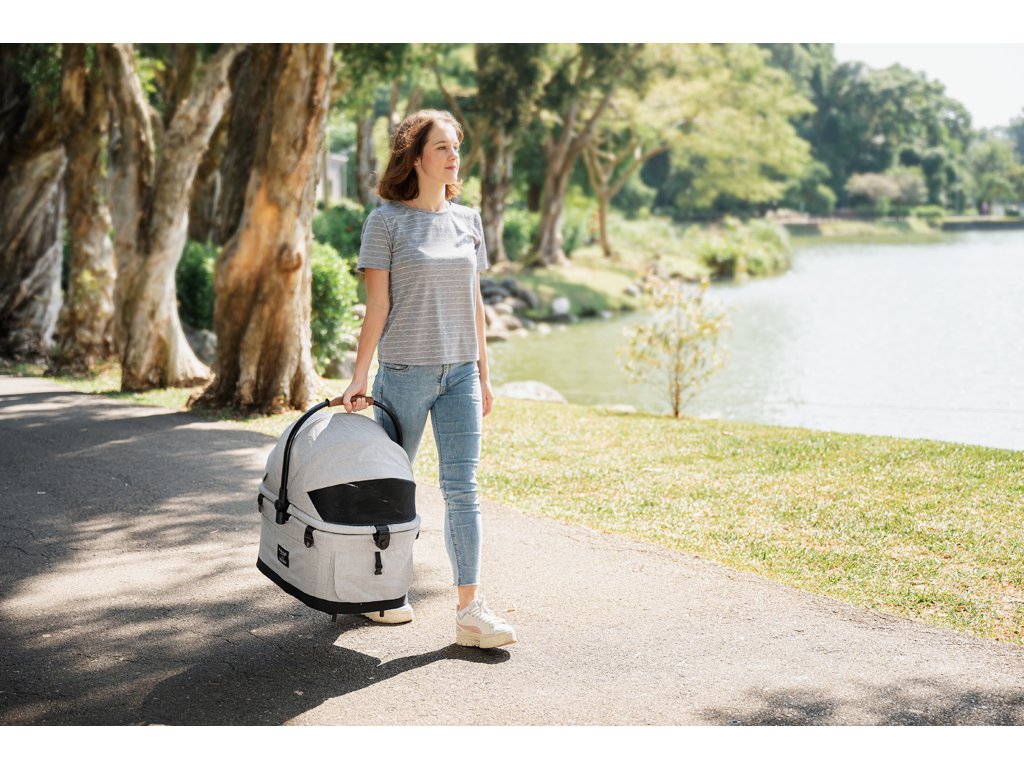 Praktický nosič Flytta, ktorý môžete používať v pohodlí domova alebo na cestách. Kočík sa jednoducho zloží za 1 sekundu, je ľahký a praktický na prenášanie.