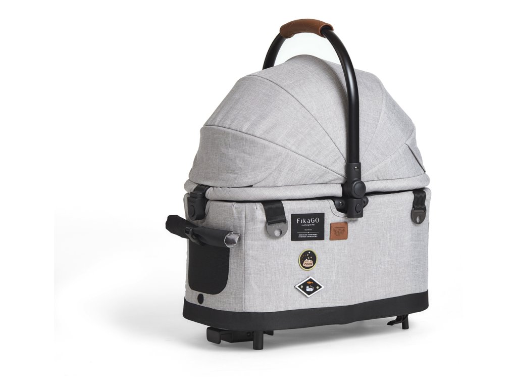 Nosič má striešku, ktorá sa dá uzavrieť z oboch strán. Sieťované okienka pre správnu ventiláciu vzduchu. Strieška sa zapína pomocou praktického zámku z oboch strán – zámok sa jednoducho ovláda – stačí jeden klik na otvorenie striešky. Na bokoch nosiča sa nachádzajú 2 praktické vrecká na uloženie vecí, ktoré potrebujete mať pri sebe. Nosič je vyrobený z recyklovateľných materiálov.