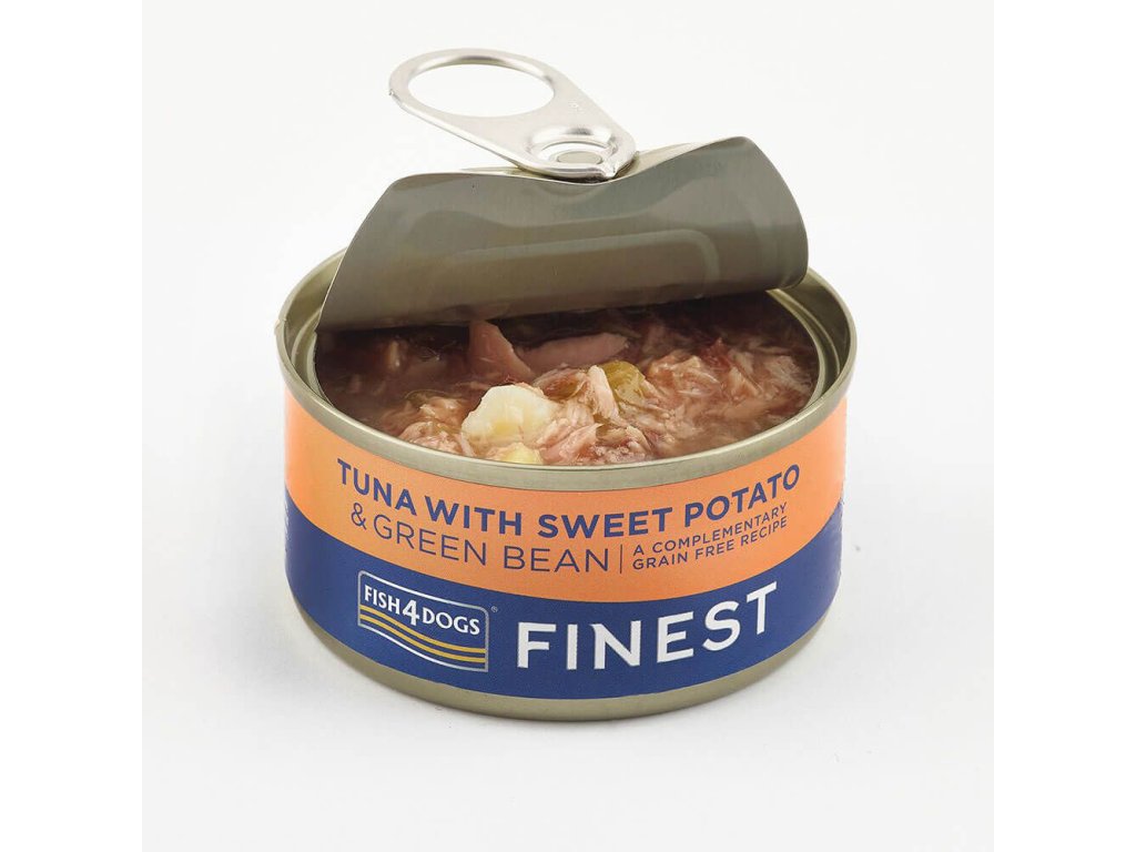FISH4DOGS Konzerva pre psov Finest s tuniakom, sladkými zemiakmi a zelenými fazuľkami 85g