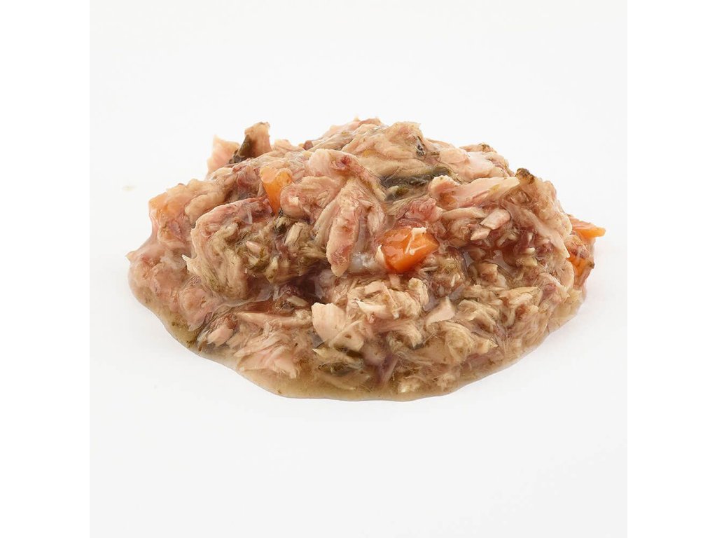Konzerva pre psov s tuniakom so špenátom a mrkvou je vyrobená z kvalitných rýb a zeleniny. Lahodná a chutná maškrta. Bez obsahu obilnín, bez pridaných umelých farbív a príchutí. Môžete pridávať k suchému jedlu, alebo podávať ako samostatnú pochúťku.