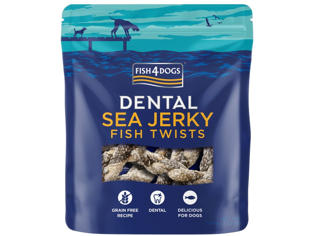 Fish4Dogs® chrumkavé maškrty, bez obilnín. Lahodné, 100% rybie pochúťky, ktoré pomáhajú podporiť zdravie zubov vášho psa. Majú nízky obsah kalórií. Tieto pochúťky sú vyrobené zo skrútenej rybej kože a môžu sa podávať v celku, alebo rozlomiť na polovicu.