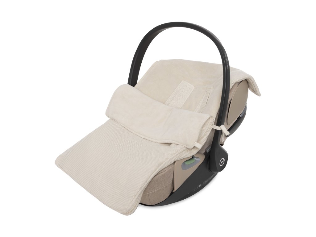 Štýlový pletený fusak do autosedačky má vonkajšiu časť z mäkkej pleteniny a vnútornú stranu z jemného fleecu pre maximálne pohodlie a tepelný komfort dieťaťa v autosedačke. Otvory v zadnej časti fusaku umožňujú pretiahnutie pásov autosedačky, fusak tak môžete mať v autosedačke pripravený a po jeho rozopnutí už stačí len dieťa do autosedačky vložiť a pripútať. Podľa teploty v aute alebo vonku fusak s pomocou zipsov zapnete alebo naopak necháte rozopnutý, aby bol zaistený tepelný komfort dieťaťa. Zapínanie na patentky v hornej časti fusaku umožňuje vytvoriť kapucňu na ochranu hlavičky dieťaťa napr. pri prenášaní dieťaťa v autosedačke vonku.