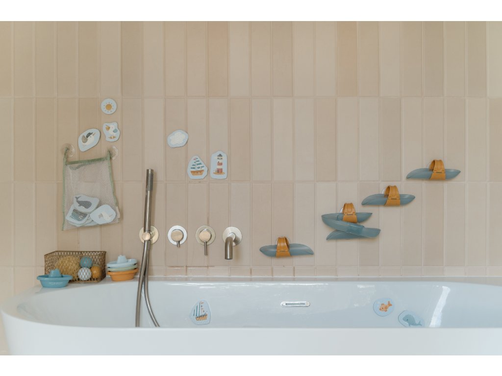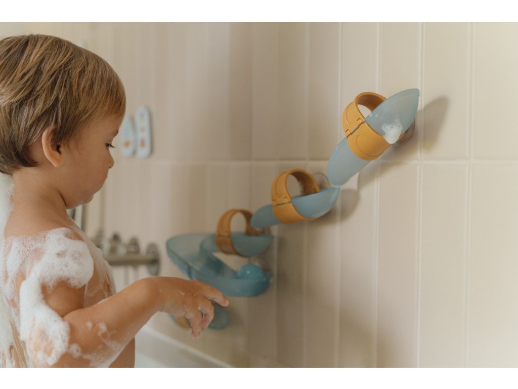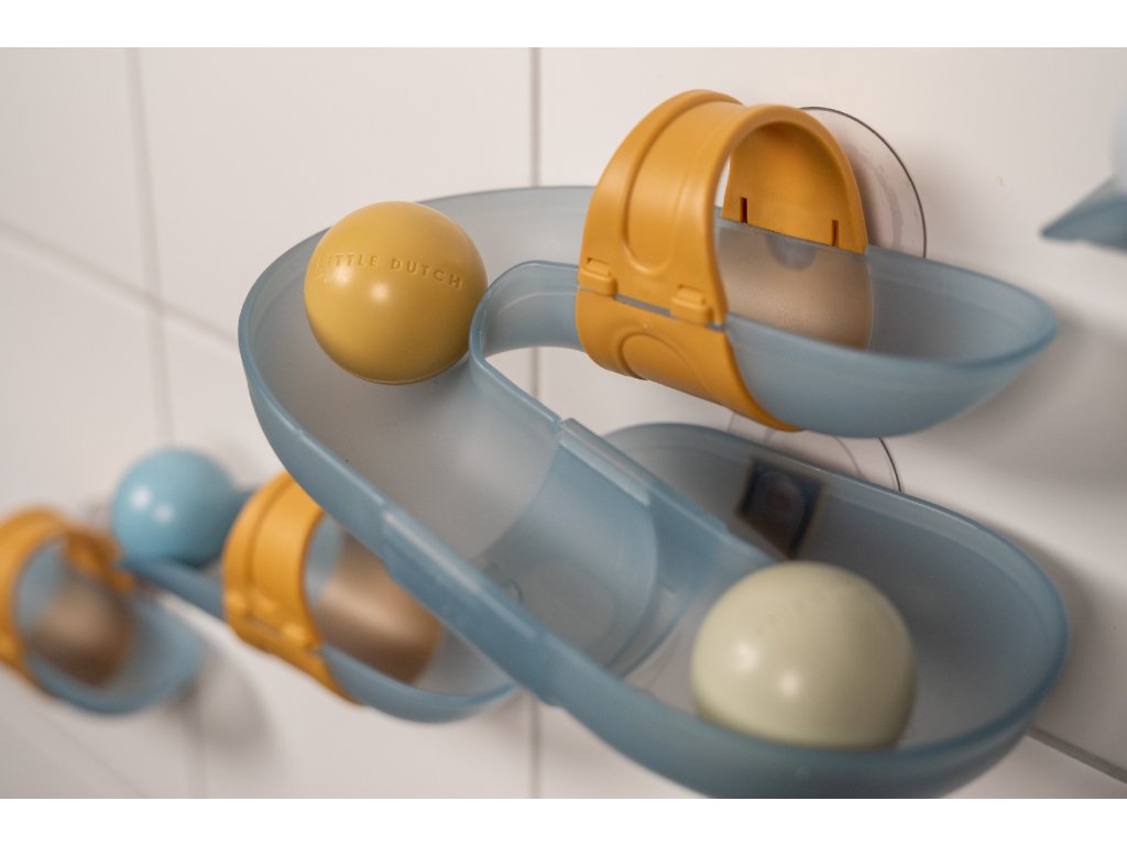 Kúpanie bude ešte zábavnejšie s touto špeciálnou guličkovou dráhou do vane. Dráhu ľahko pripevníte na vaňu či dlaždičky s pomocou prísaviek, ktoré umožňujú aj jej ľahké zloženie po kúpeli. Sledujte spoločne s vašim dieťaťom, ako sa loptičky kotúľajú dole jeden za druhým, až na konci padnú do vody.