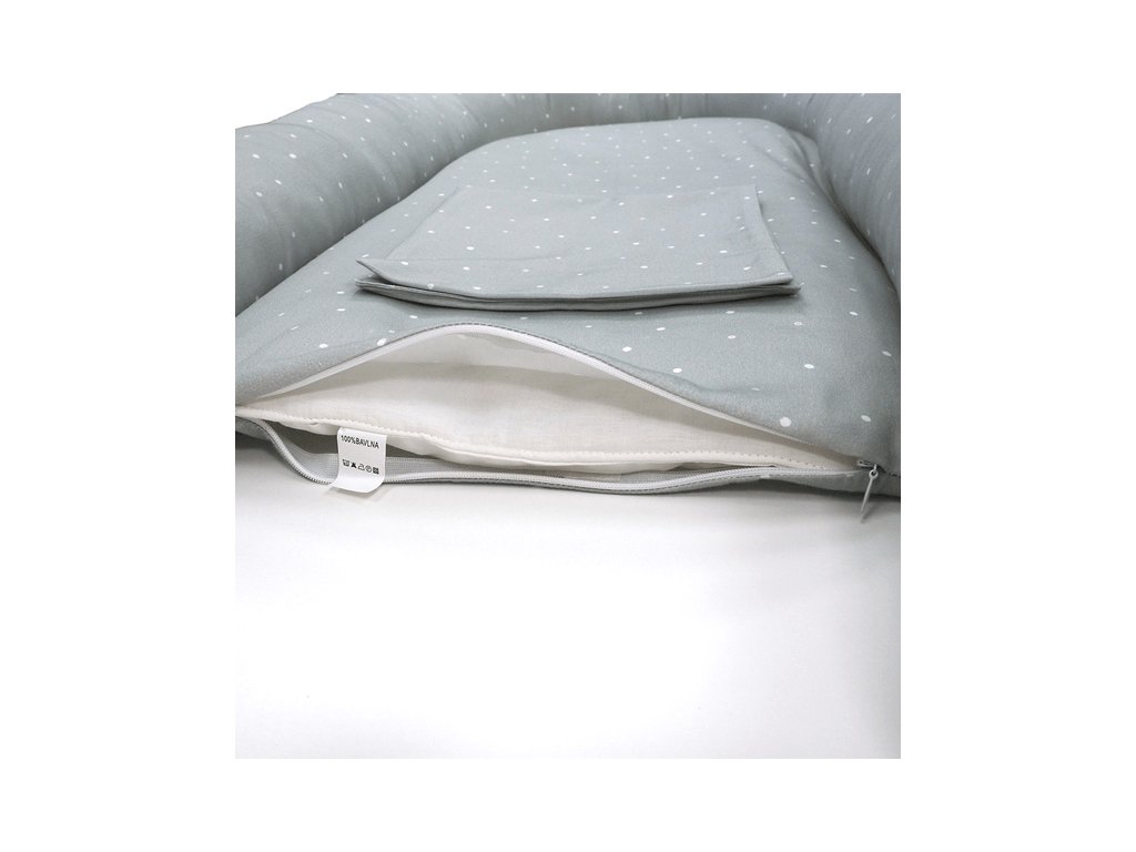 Hniezdo pre bábätko SOFTELLO – šalviová bodka je stelesnením pohodlia, bezpečia a nadčasového dizajnu. Vyrobené z prémiového bavlneného saténu s naším originálnym dizajnom. Tento výnimočný materiál je v porovnaní s klasickou bavlnou výrazne jemnejší, hebkejší a príjemnejší na dotyk, takže vaše bábätko sa v ňom bude cítiť doslova ako v bavlnke.