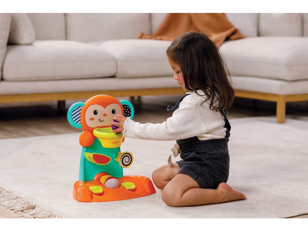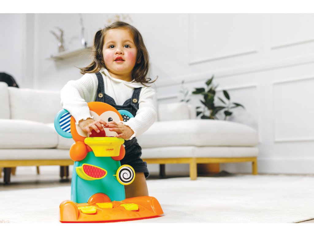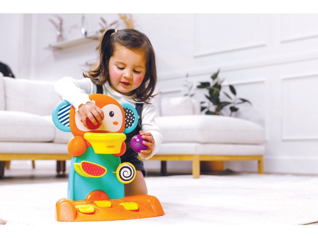 Hrací pult v podobe farebného slona umožní vášmu dieťaťu prvý tréning hádzania na kôš! Pre väčšiu zábavu je jedna z dvoch loptičiek…