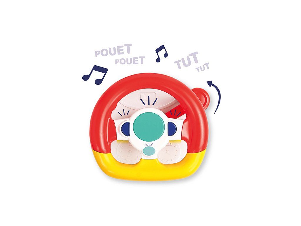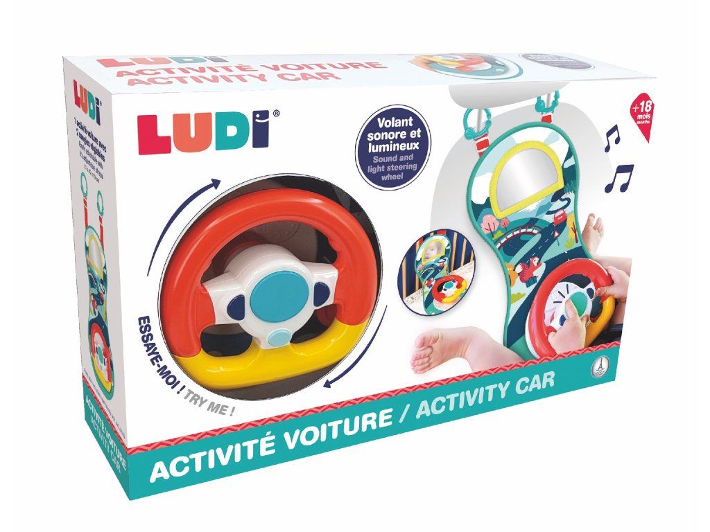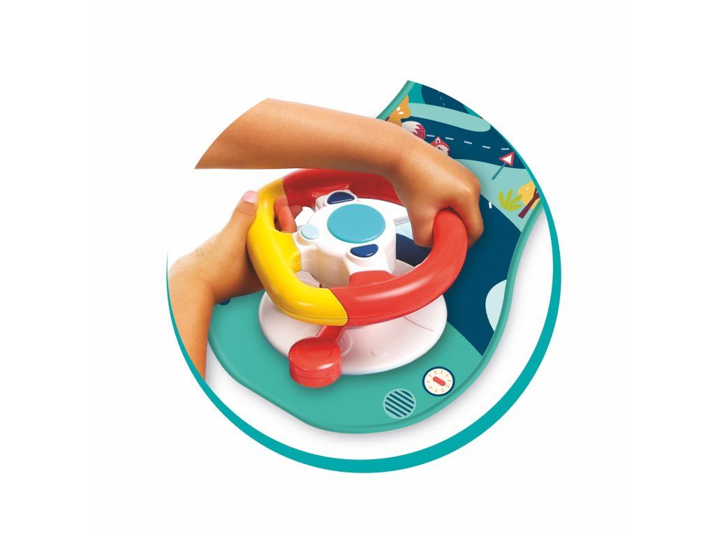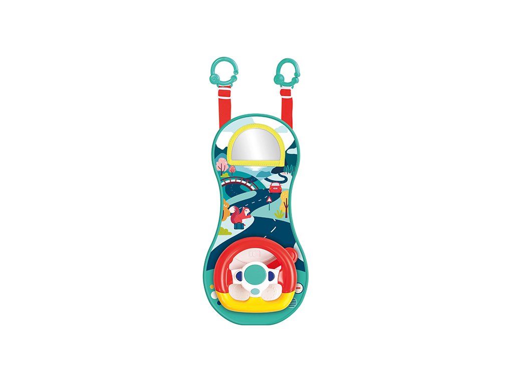 Interaktívny hrací pultík zabaví vaše dieťa na cestách autom. Volant ponúka tlačidlá so zvukmi štartovania, klaksónu a blinkrov, pozornosť dieťaťa upúta aj bezpečné zrkadlo.