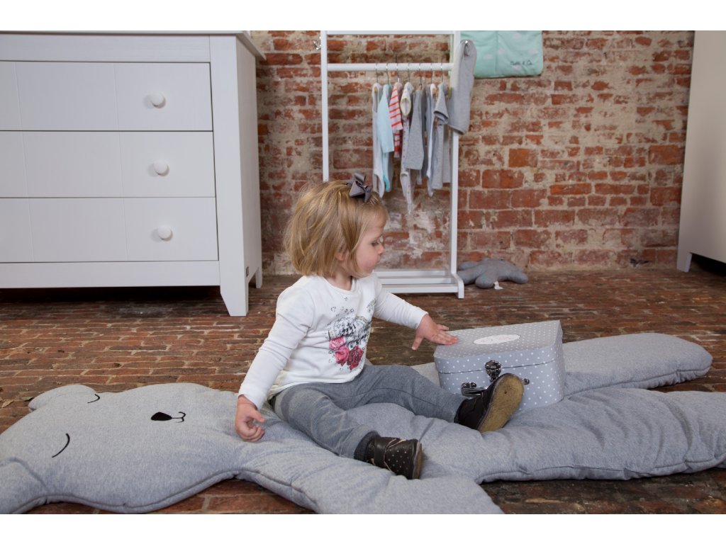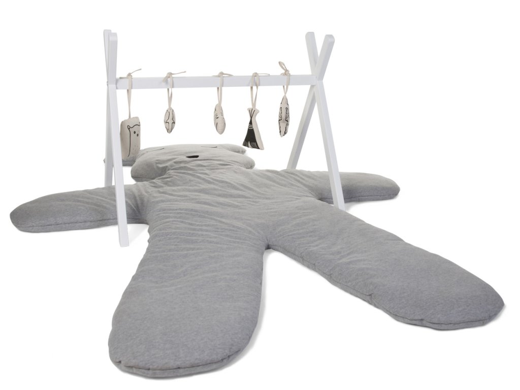 Mäkká hracia deka v podobe obrovského medveďa spríjemní hranie dieťaťa na zemi a zároveň slúži ako krásna dekorácia detskej izby.