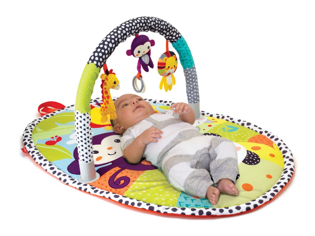 Hracia deka s krásnymi ilustráciami zvieratiek zo ZOO. Zavesené hračky na hrazde zabavia a nabádajú k skúmaniu bábätko ležiace na chrbte.