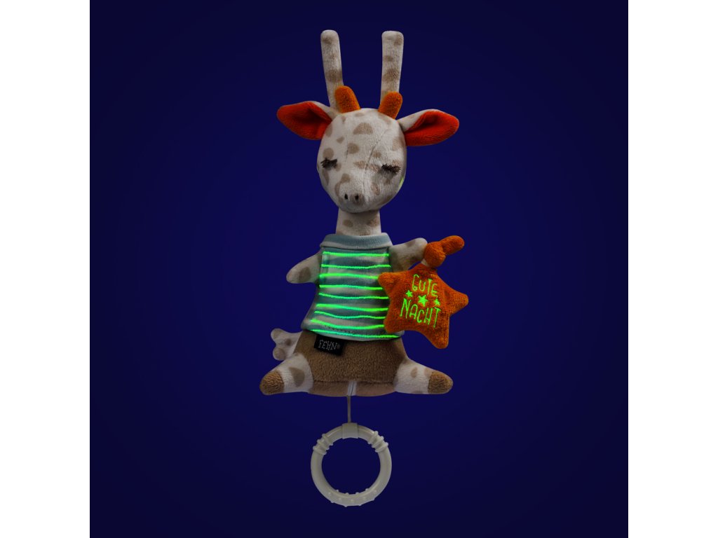 Roztomilá hračka na maznanie v tvare žirafy sa stane verným kamarátom vášho dieťaťa od narodenia. Cez deň pôsobí ako plyšový kamarát, v noci uspáva vaše dieťa melódiou "Sleep Baby Sleep". Svetelné body pomôžu rozptýliť strach dieťaťa z tmy a pomôžu mu lepšie zaspať.