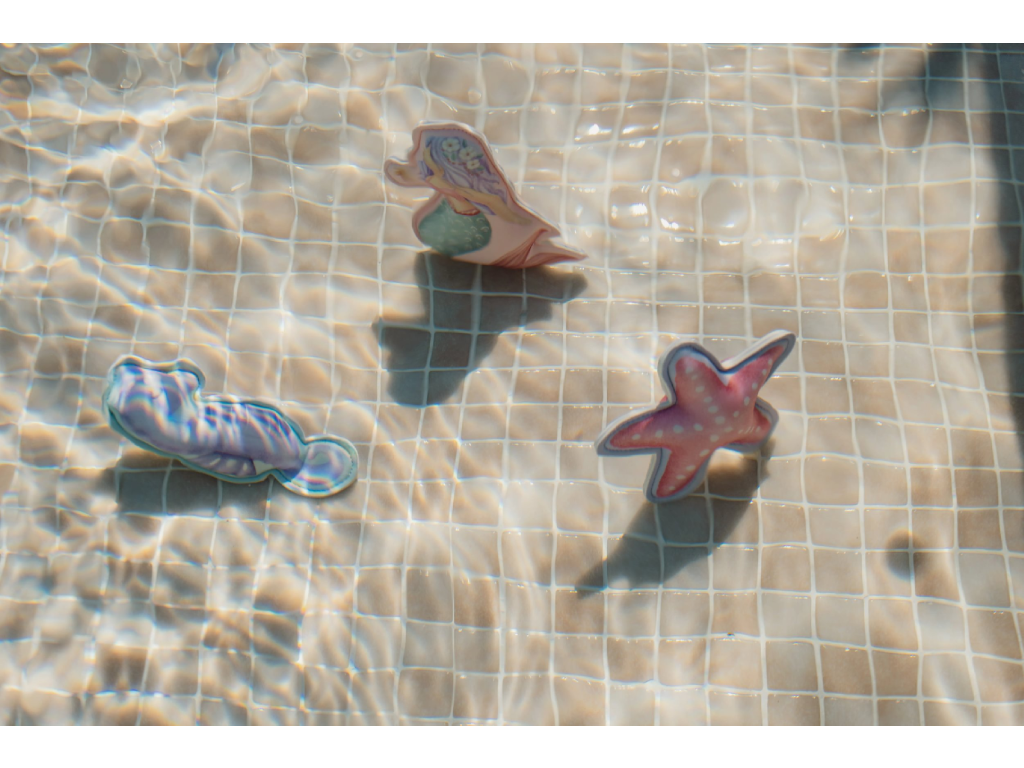 Nechajte svoje dieťa potápať sa a hľadať pod hladinou krásne farebné hračky v podobe morskej víly, morského koníka a hviezdice. Hračky z mäkkého neoprénu pomaly klesajú ku dnu a sú ideálne na bezpečný tréning vo vode.