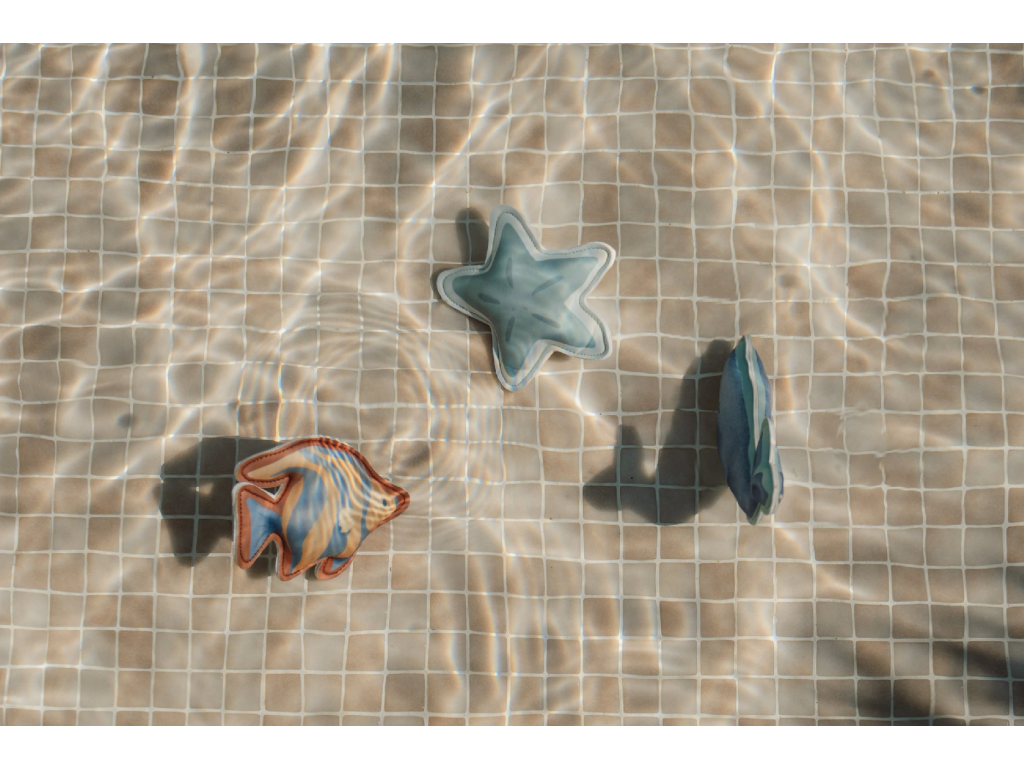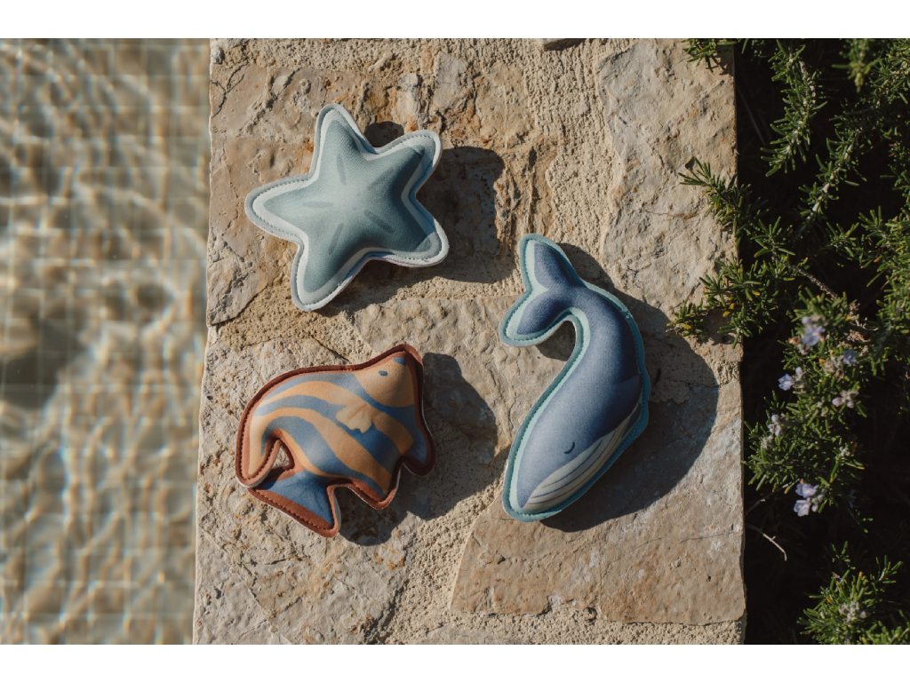 Nechajte svoje dieťa potápať sa a hľadať pod hladinou krásne farebné hračky v podobe veľryby, rybky a hviezdice. Hračky z mäkkého neoprénu pomaly klesajú ku dnu a sú ideálne na bezpečný tréning vo vode.