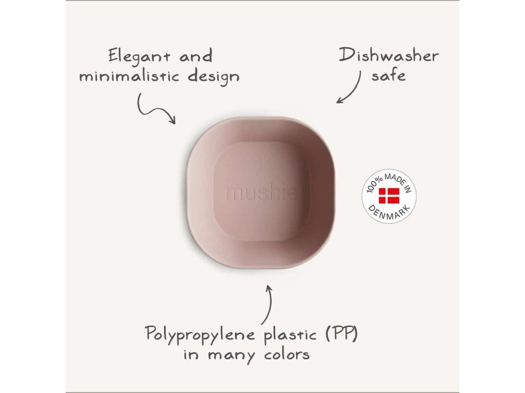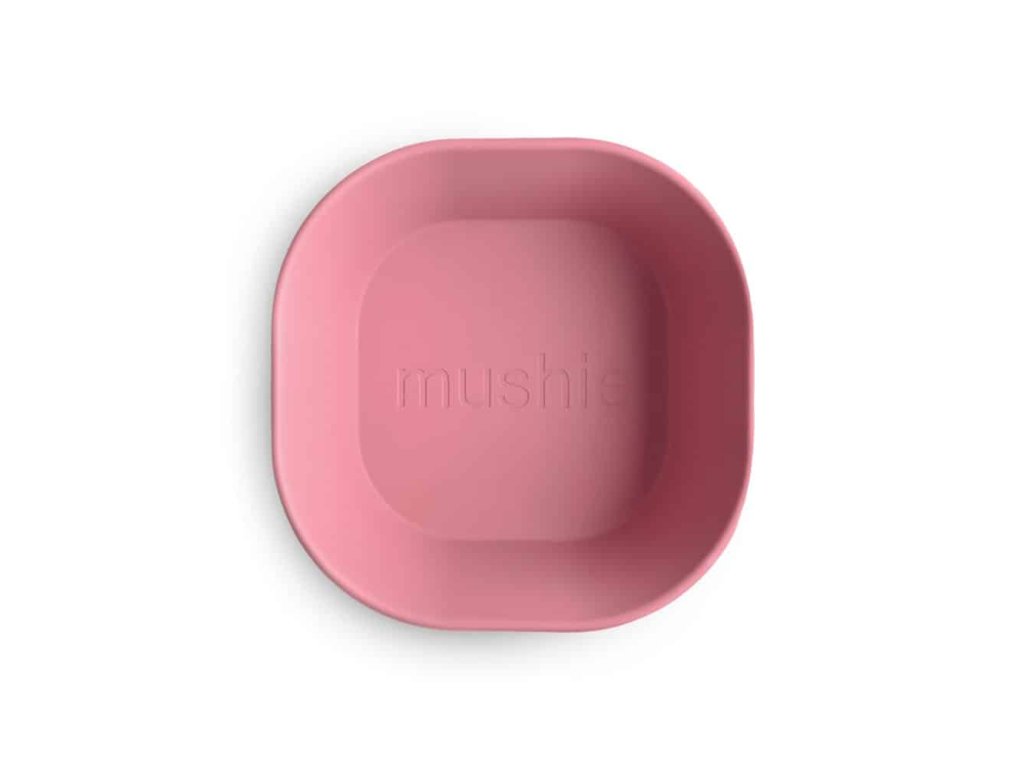 Zoznámte svojho drobca s prvými pevnými jedlami pomocou hranatej misky Mushie Dinner Bowl v odtieni Dusty Rose.