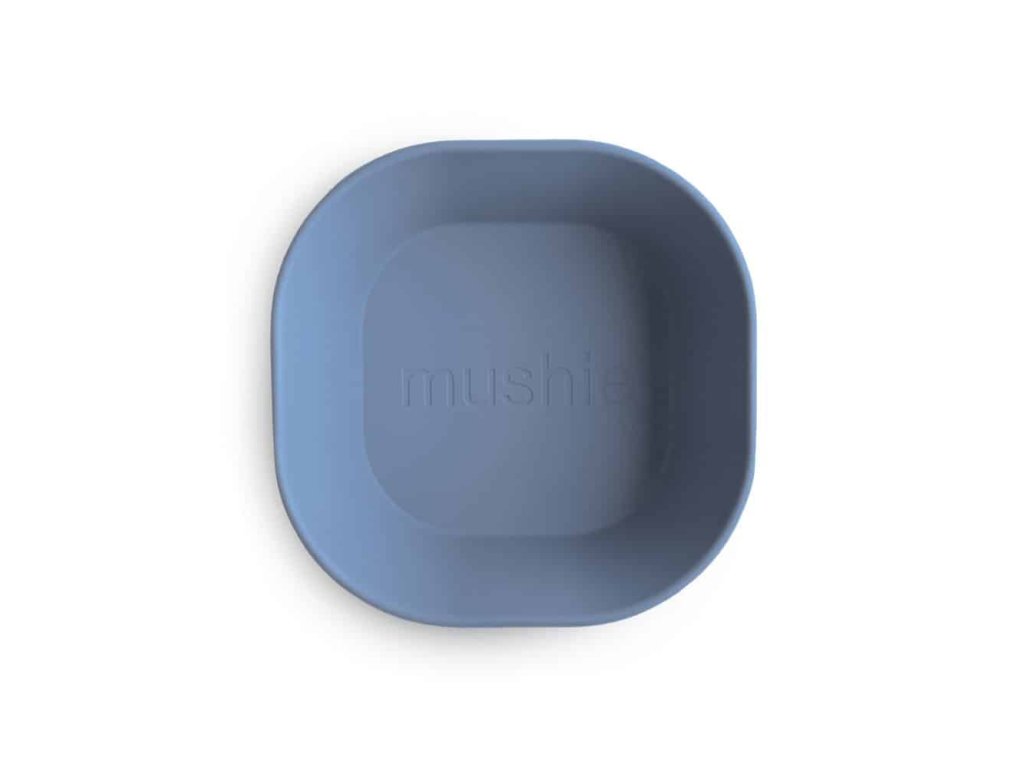 Zoznámte svojho drobca s prvými pevnými jedlami pomocou hranatej misky Mushie Dinner Bowl v odtieni Twilight Blue.