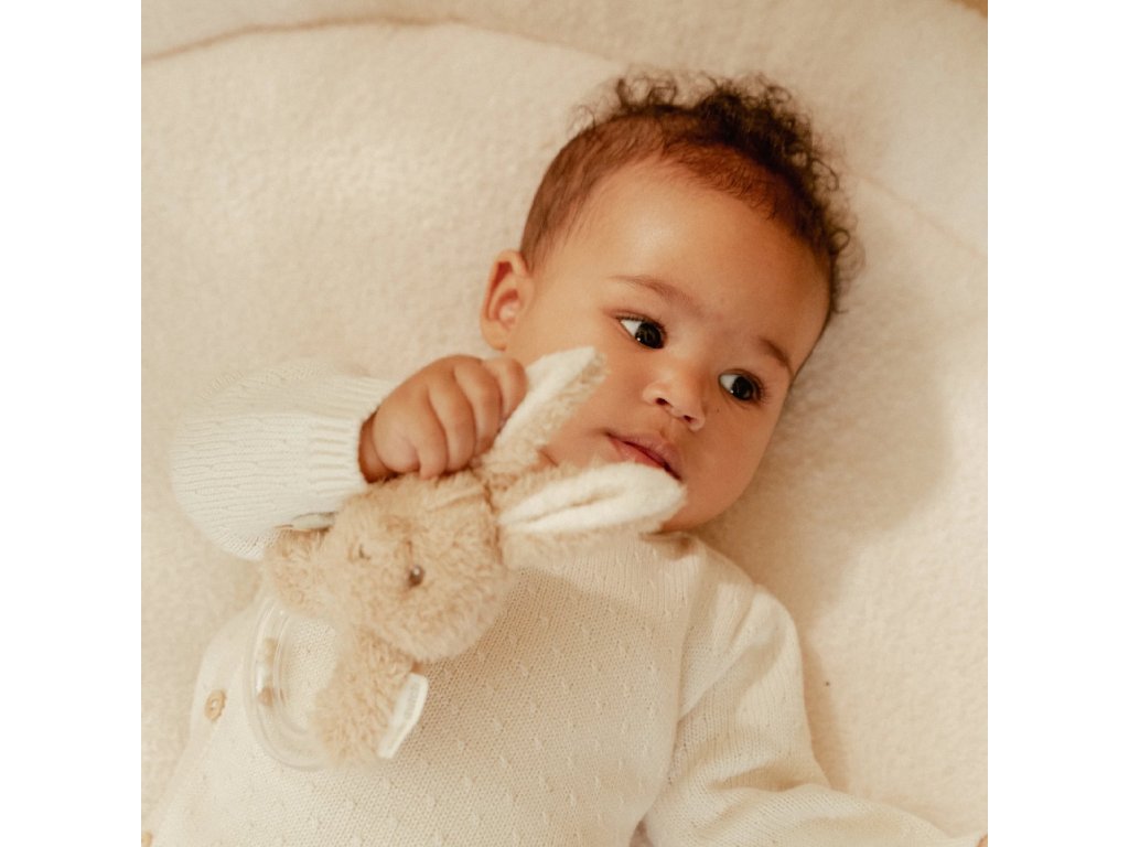 Originálna hrkálka v podobe priehľadného krúžku s hrkajúcimi korálkami a plyšovým králičkom je ideálna ako prvá hračka pre vaše bábätko.…