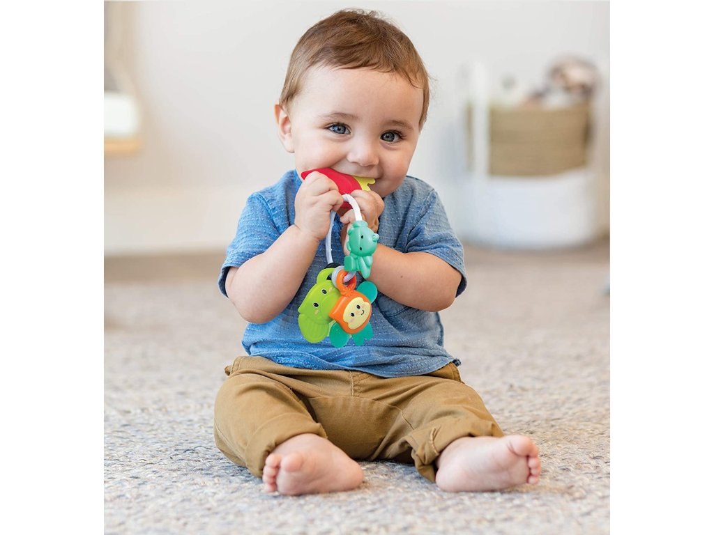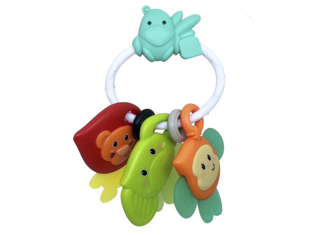 Bezpečná hrkálka a hryzátko dieťa zabaví aj uľaví jeho citlivým ďasnám pri prerezávaní zúbkov. Tvar hračky umožňuje ľahké uchopenie detskými ručičkami.