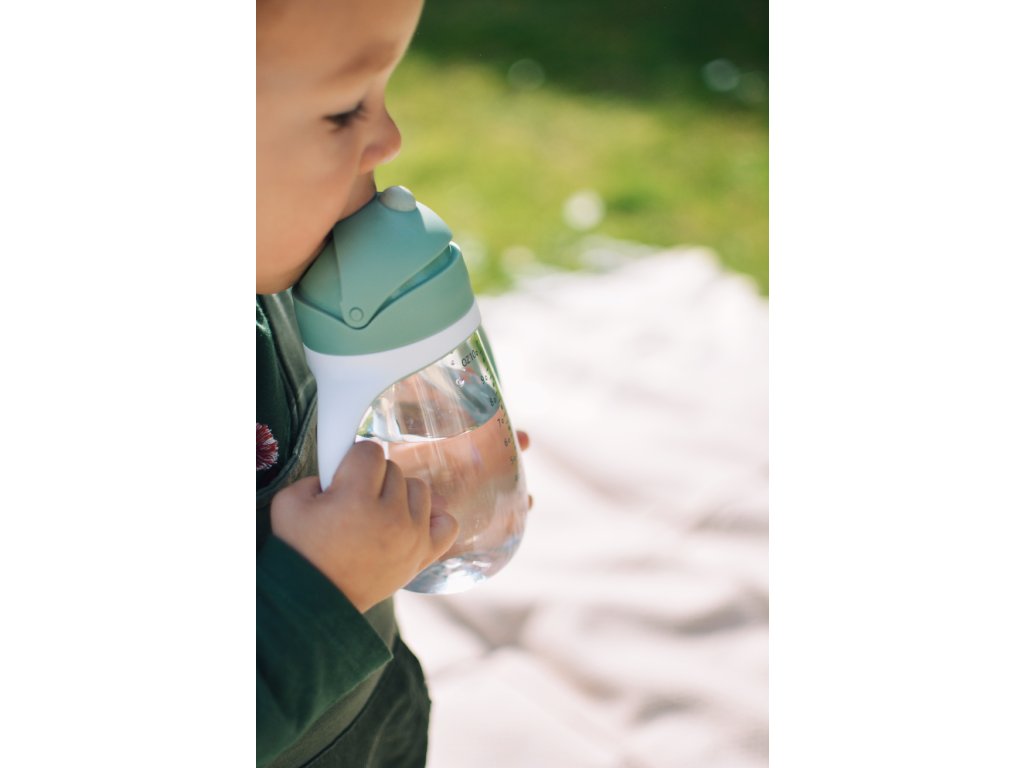 Hrnček so zaklapávacím silikónovým slamkou je ideálny pre použitie doma aj na cestách. Kombinácia posuvného viečka a mäkkej zaklapávacej slamky je zárukou bezpečného aj hygienického prenášania v taške. Ventil v slamke navyše bráni vyliatiu obsahu fľaštičky pri prevrhnutí aj keď viečko nie je zaklapnuté. Odnímateľné držadlá uľahčujú dieťaťu držanie hrnčeka.