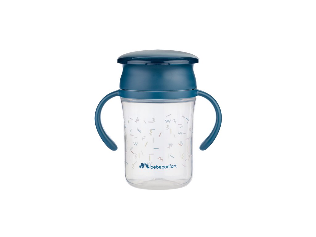 Trénovací hrnček 360 ° ponúka unikátne riešenie, ako naučiť dieťa piť z hrnčeka bez náustku. Vďaka špeciálnej membráne hrnček nevytečie pri prevrhnutí. Dieťa môže piť z ktoréhokoľvek miesta po obvode hornej hrany hrnčeka. Odnímateľné držadlá uľahčujú dieťaťu držanie. Viečko chráni hygienickú čistotu hrnčeka pri prenášaní.