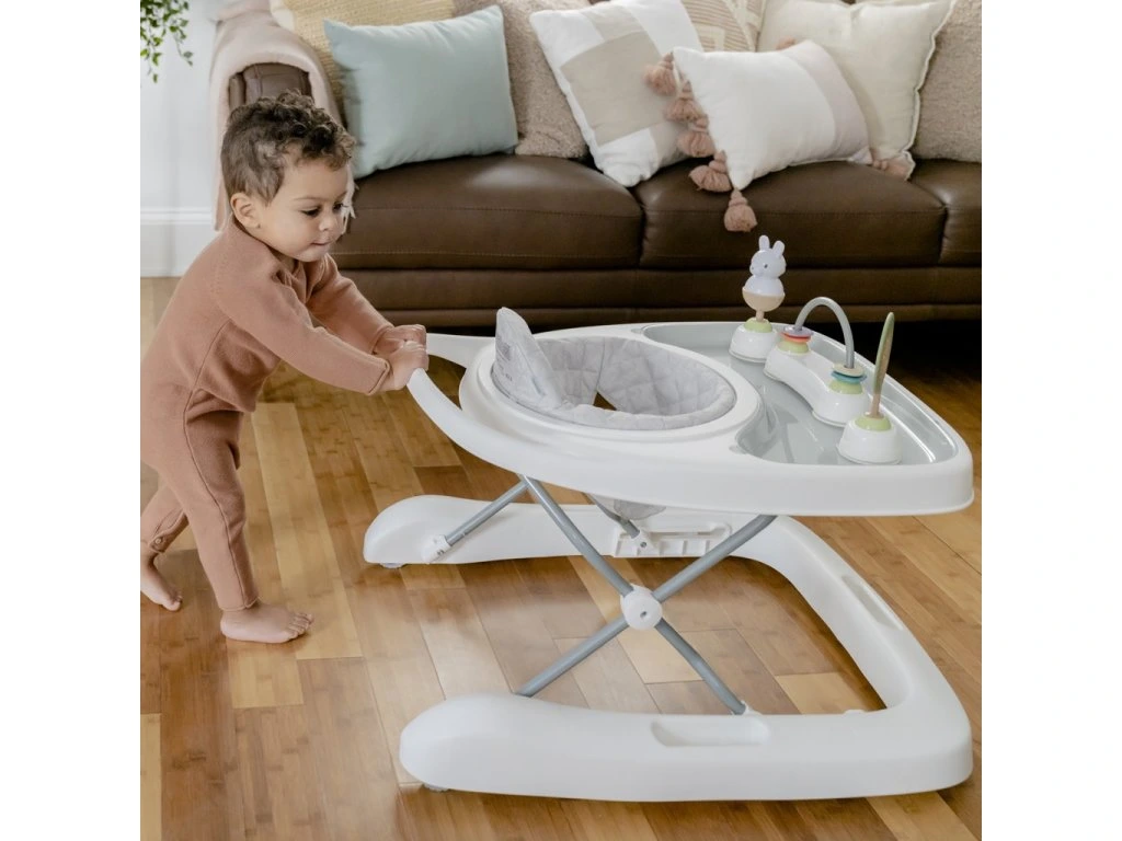 Režim aktívneho chodítka podporuje prvé kroky dieťaťa, zatiaľ čo režim tlačenia pomáha udržať dieťa pri chôdzi v pokoji. 3 odnímateľné hračky inšpirované prírodou majú prísavky na pripevnenie k iným podnosom alebo stolíkom. Chodítko sa ľahko udržiava v čistote - obsahuje veľký pultík s odnímateľnou vložkou podnosu bez BPA, ktorý je možné umývať v umývačke riadu, podložku na sedadlo možno prať v práčke a hračku jednoducho utrieť. Mäkká plyšová vložka na sedenie zabezpečí dieťatku pohodlie, zatiaľ čo pevný rám pomáha udržiavať dieťa v bezpečí. Konštrukcia chodítka zabezpečuje jednoduché skladanie, skladovanie a aj prenášanie. Bezpečnosť je posilnená gumovými kolieskami, ktoré brzdia rám. Možnosť nastavenia rámu chodítka do troch výškových polôh zabezpečuje správny vývoj vášho dieťaťa, pretože udržuje chodidlá vo vhodnej polohe. Neutrálny moderný dizajn sa bude hodiť do každého interiéru