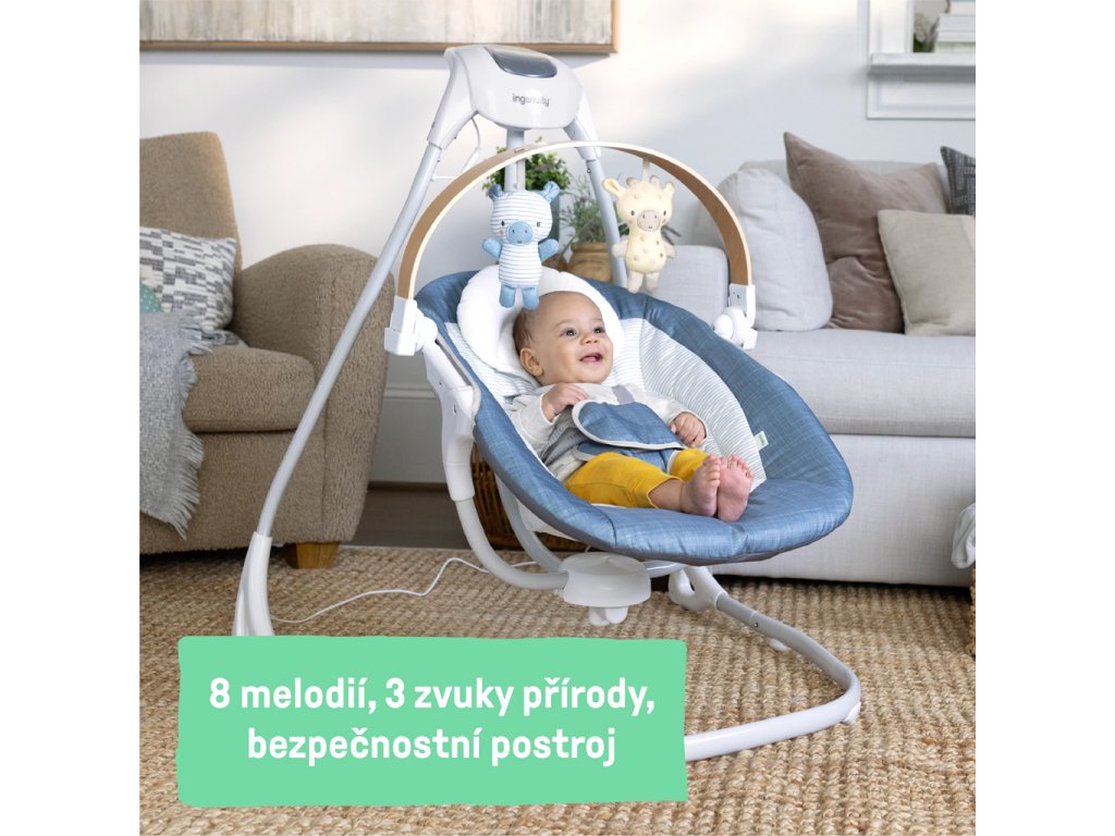 Zabavte dieťatko s kompaktnou hojdačkou Ingenuity SimpleComfort – Chambray.