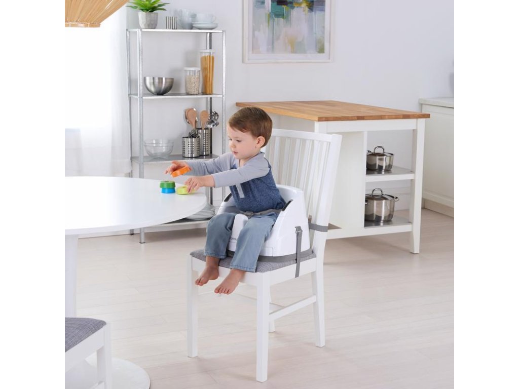 Podsedák sa ľahko pripája na jedálenské stoličky. Funkcia 2v1 Vám umožňuje použiť ho ako sedenie pri stole, ale aj ako sedadlo na podlahe počas voľného času. Vďaka odnímateľnému pultíku má dieťatko vlastný stôl dokonalej veľkosti, čiže občerstvenie a aj hračky sú na dosah.