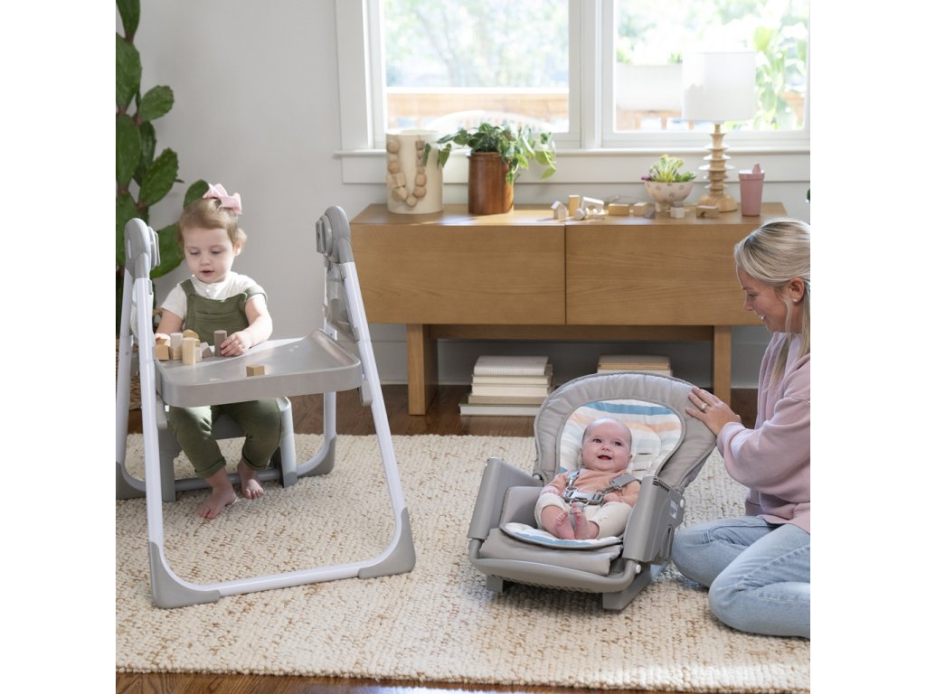 - Vyberte si jedno sedadlo pre všetky potreby dieťaťa – kŕmenie, hru aj oporu – s vysokou stoličkou Ingenuity Proper Positioner Create Up! High Chair, s 15 možnosťami využitia od narodenia až do 5 rokov.