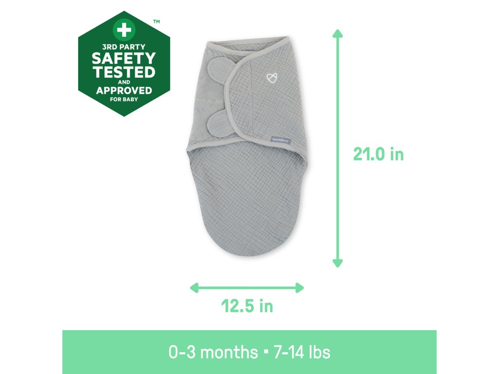 Udržujte svoje milované dieťatko pokojné a utešené pomocou zavinovačky SwaddleMe od Ingenuity Original Swaddle, ktorá je teraz súčasťou nového mušelínového materiálu.