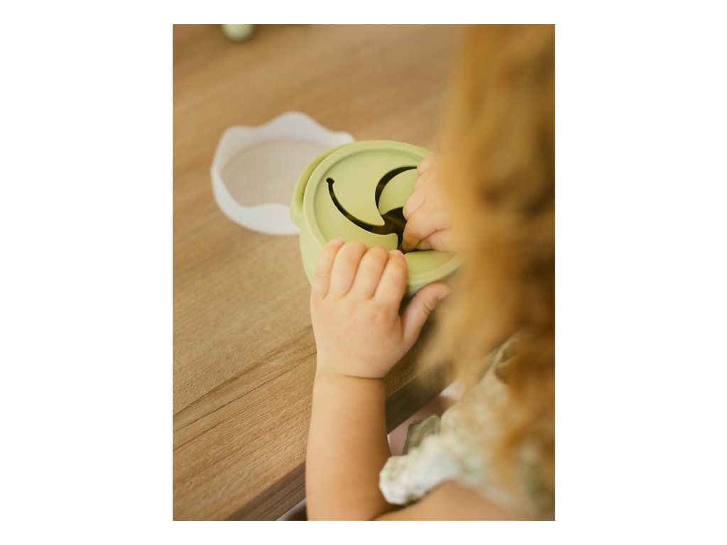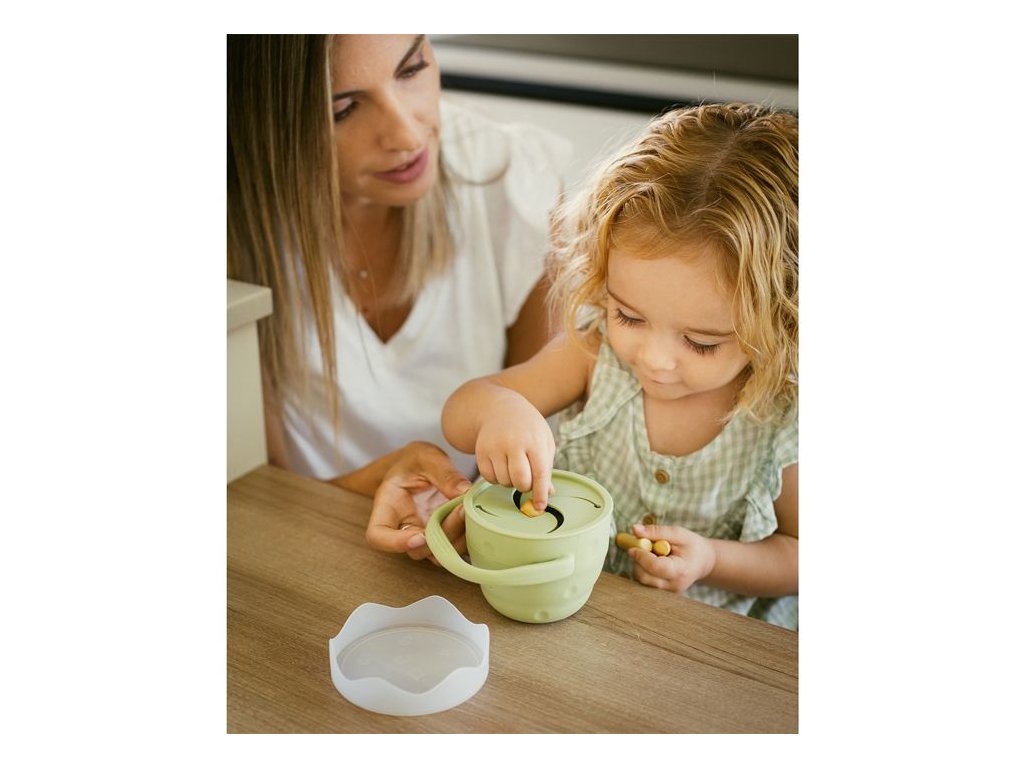 Skládací silikónový hrnček je ideálny pre čas obeda alebo desiaty strávený v parku alebo na cestách. Súčásťou hrnčeka je silikónové viečko, ktoré zaistí že zvyšný obsah je v bezpečí a detská ruka sa k nemu ľahko dostane. Ľahko sa zloží na plocho, takže nezaberá toľko miesta.