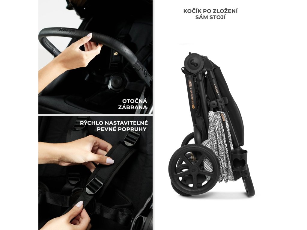 Vkladanie dieťaťa do kočíka nebolo nikdy také jednoduché. Otočná zábrana sa dá jednoducho sklopiť a polstrované 5-bodové bezpečnostné pásy umožňujú rýchle pripútanie dieťaťa. Popruhy môžete nastaviť v okamihu pomocou jednej ruky. MITZY má aj veľký kôš s nosnosťou až 5 kg, do ktorého môžete uložiť detské hračky a väčšie nákupy.