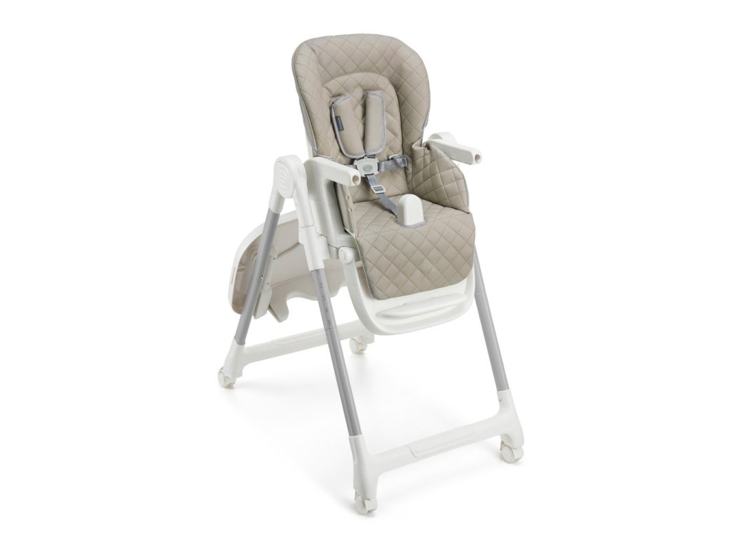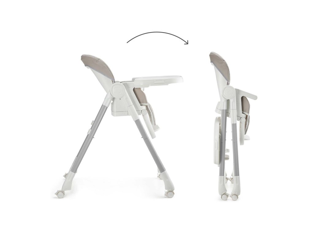 Integrované kolieska s brzdami, 5-bodové bezpečnostné pásy a mäkké, ľahko čistiteľné PU čalúnenie zvyšujú pohodlie a bezpečnosť dieťaťa. Po zložení má stolička mimoriadne kompaktný tvar, čo uľahčuje jej uskladnenie. Zaberá minimum miesta, takže sa ľahko zmestí do rohu alebo skrine.