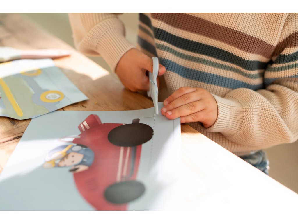 Originálna kreatívna kniha Little Dutch poteší všetkých malých milovníkov áut a tvorenia. Obsahuje 20 farebných vystrihovacích vozidiel, ktoré si deti po vystrihnutí môžu dozdobiť a vytvoriť si tak vlastnú zbierku áut, strojov a dopravných prostriedkov. Súčasťou balenia sú bezpečné detské nožnice, vďaka ktorým môžu deti masky vystrihovať samostatne a bez rizika.