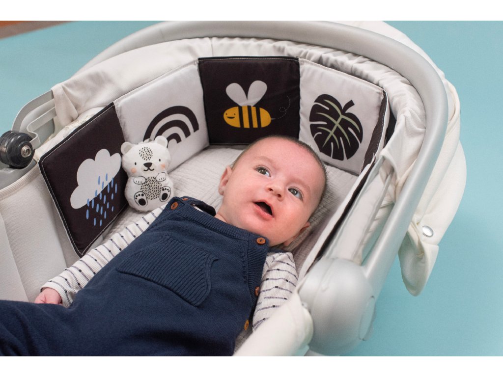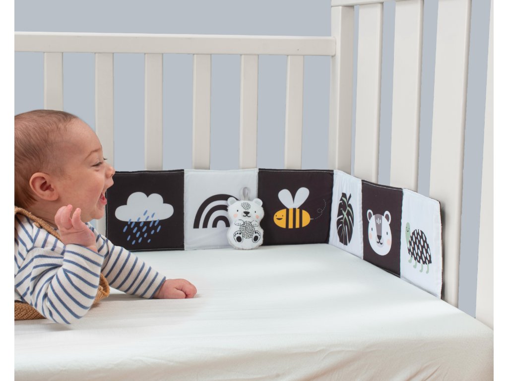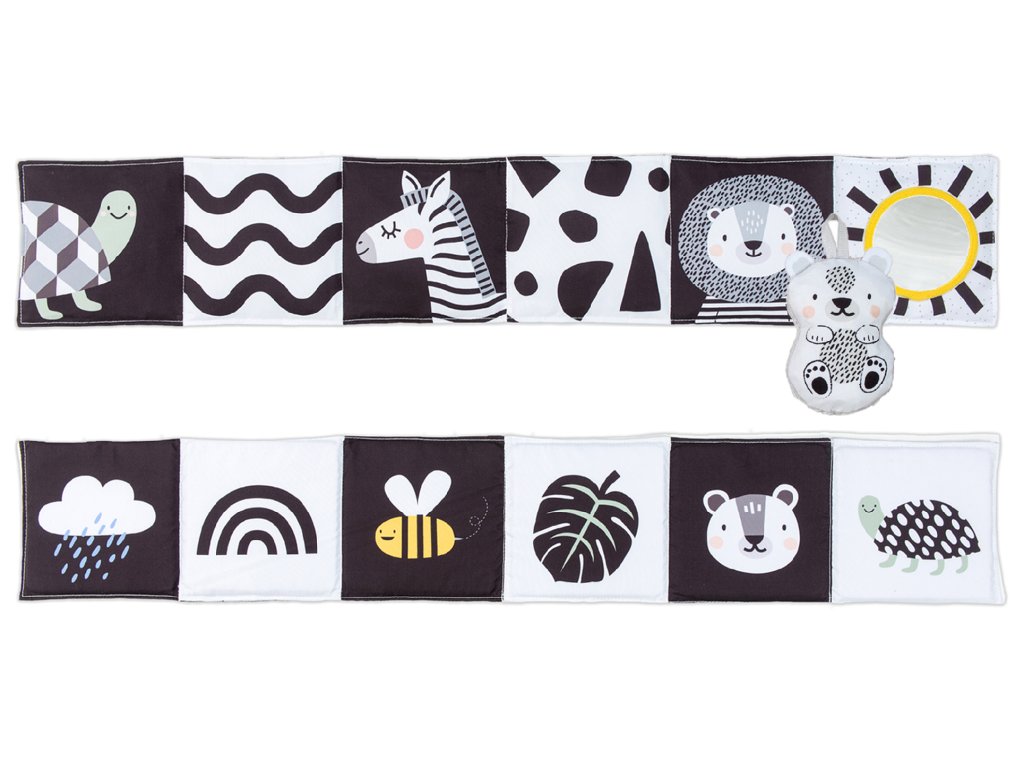 Obojstranná textilná knižka pre najmenších je určená do kočíka, postieľky aj na hraciu deku.