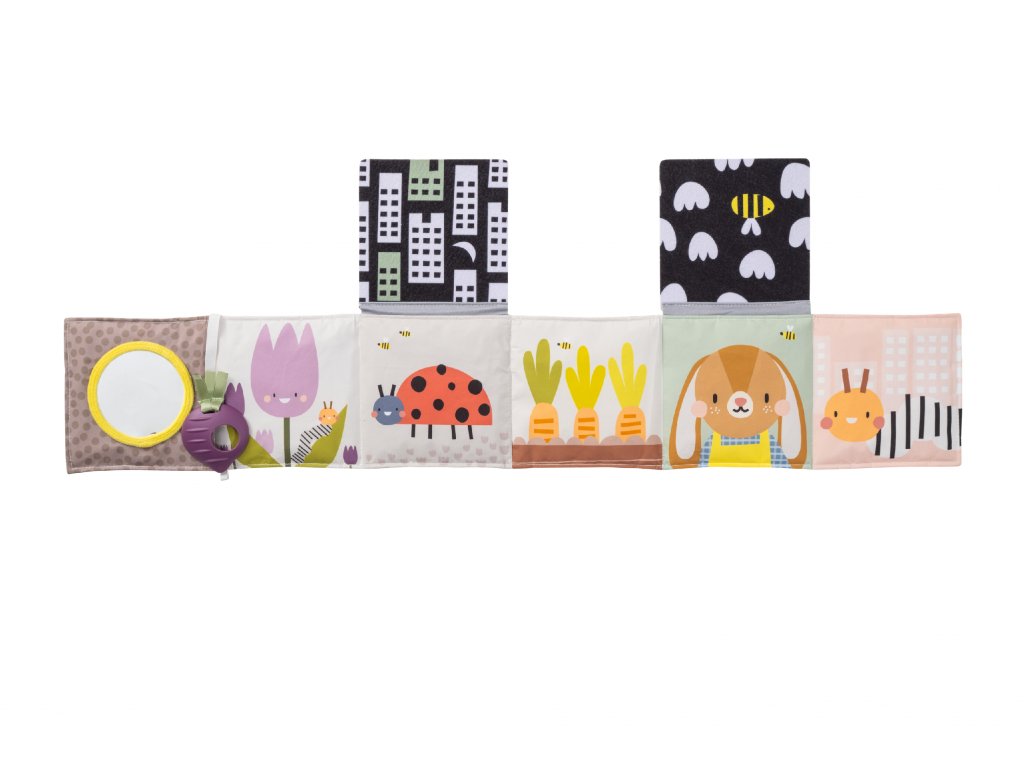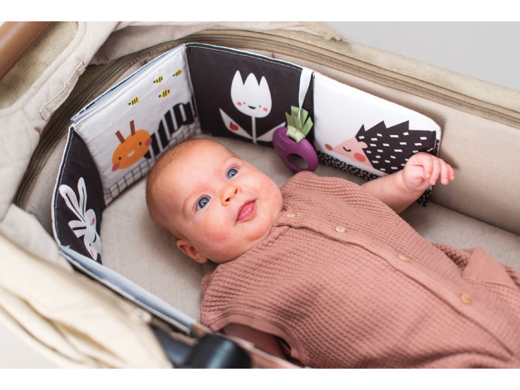 Obojstranná textilná knižka pre najmenších je určená do kočíka, postieľky aj na hraciu deku.