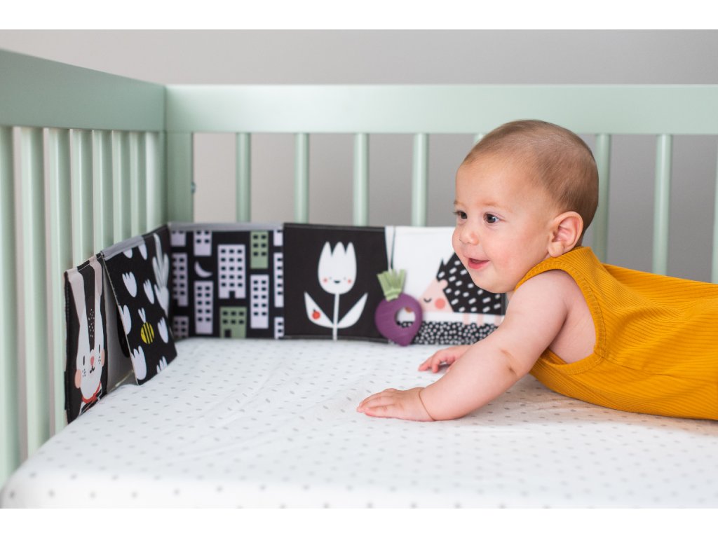- 0-3 mesiace: strana a vysoko kontrastnými, jednoduchými obrázky v základných farbách, ktoré podnecujú rozvoj zmyslov a emočnej inteligencie dieťaťa.