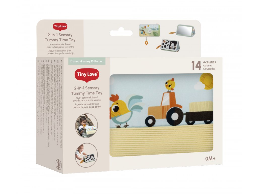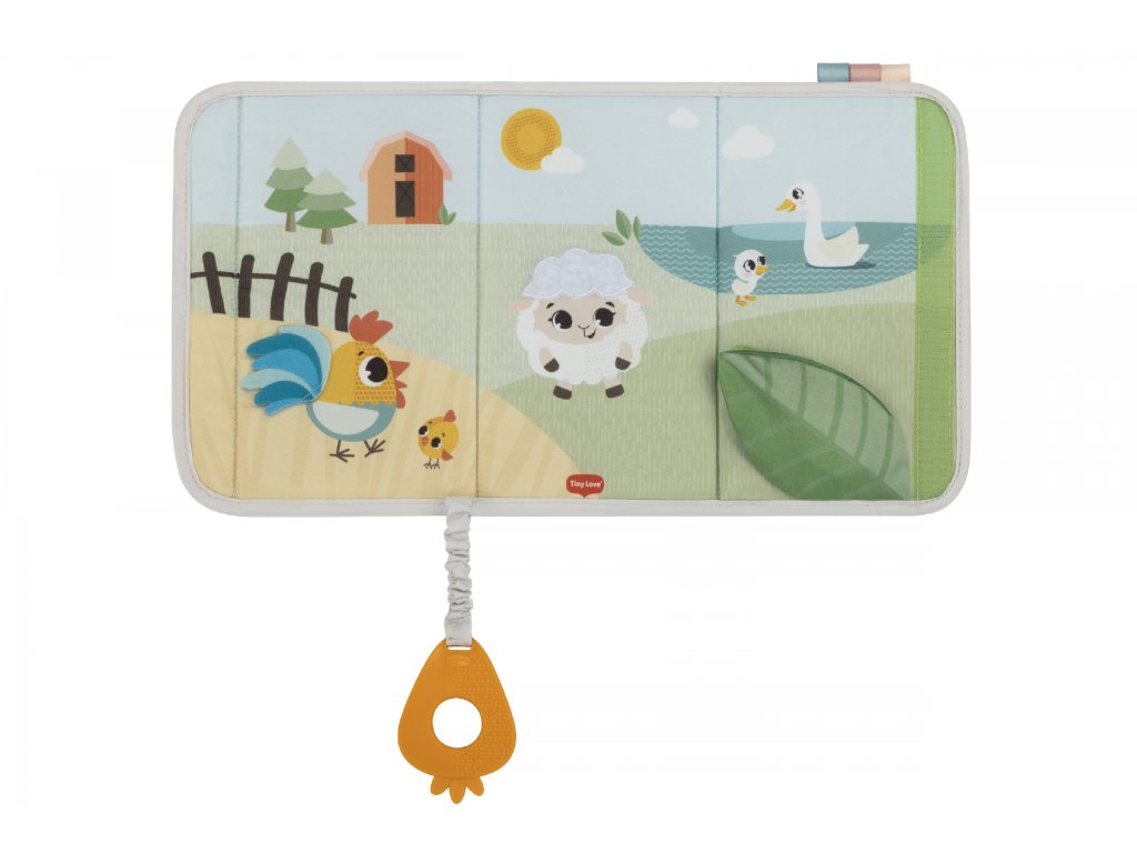 Detská knižka pre hru na brušku Tiny Love je mäkká, skladacia hračka, ktorá ponúka 4 varianty použitia pri hraní bábätka na brušku. Vysoko kontrastné obrázky, bezpečné zrkadlo, hryzátko a ďalšie aktivity lákajú bábätko na skúmanie a pomáhajú ho tak udržať dlhšie v polohe na brušku, ktorá je dôležitá pre posilňovanie jeho krčných a chrbtových svalov. Knižku môžete aj zložiť a pripevniť na kočík, takže zabaví vaše dieťa aj na cestách.