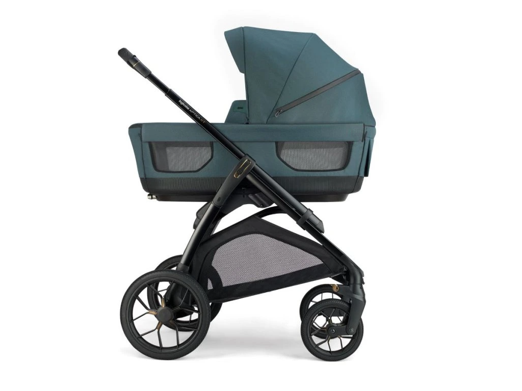 Kombinovaný kočík Aptica XT 4v1 Recline sa skladá z: priestrannej hlbokej vaničky XXL s 5-timi okienkami, matraca Welcome PadTM, stojana Stand UpTM, autosedačky Darwin Recline Evo R129, športovej sedačky All season so strieškou, košíka, držiaka pohárika a nového odľahčeného adaptívneho podvozku Aptica XT.